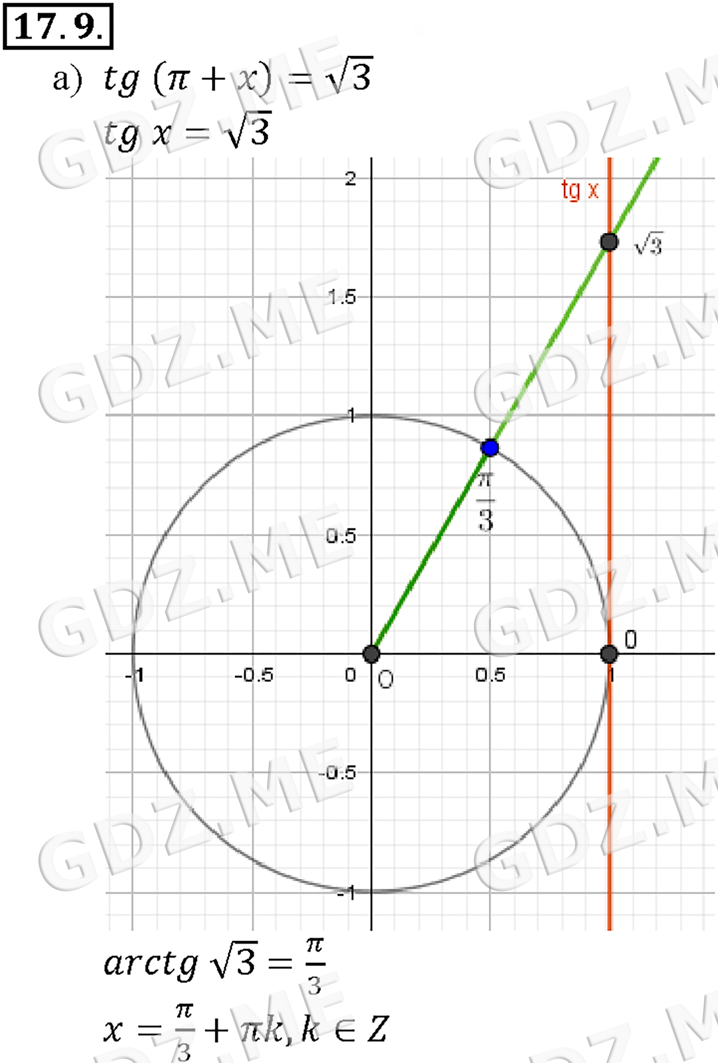 Подробный вариант решения из решебника (ГДЗ): Задание номер 17-9_1 (Глава 2 Тригонометрические функции. Глава 3 Тригонометрические уравнения. §17. Арктангенс и арккотангенс. Решение уравнений tg х = a, ctg х = а) по предмету Алгебра, за 10 класс, авторы учебника Мордкович, Александрова.