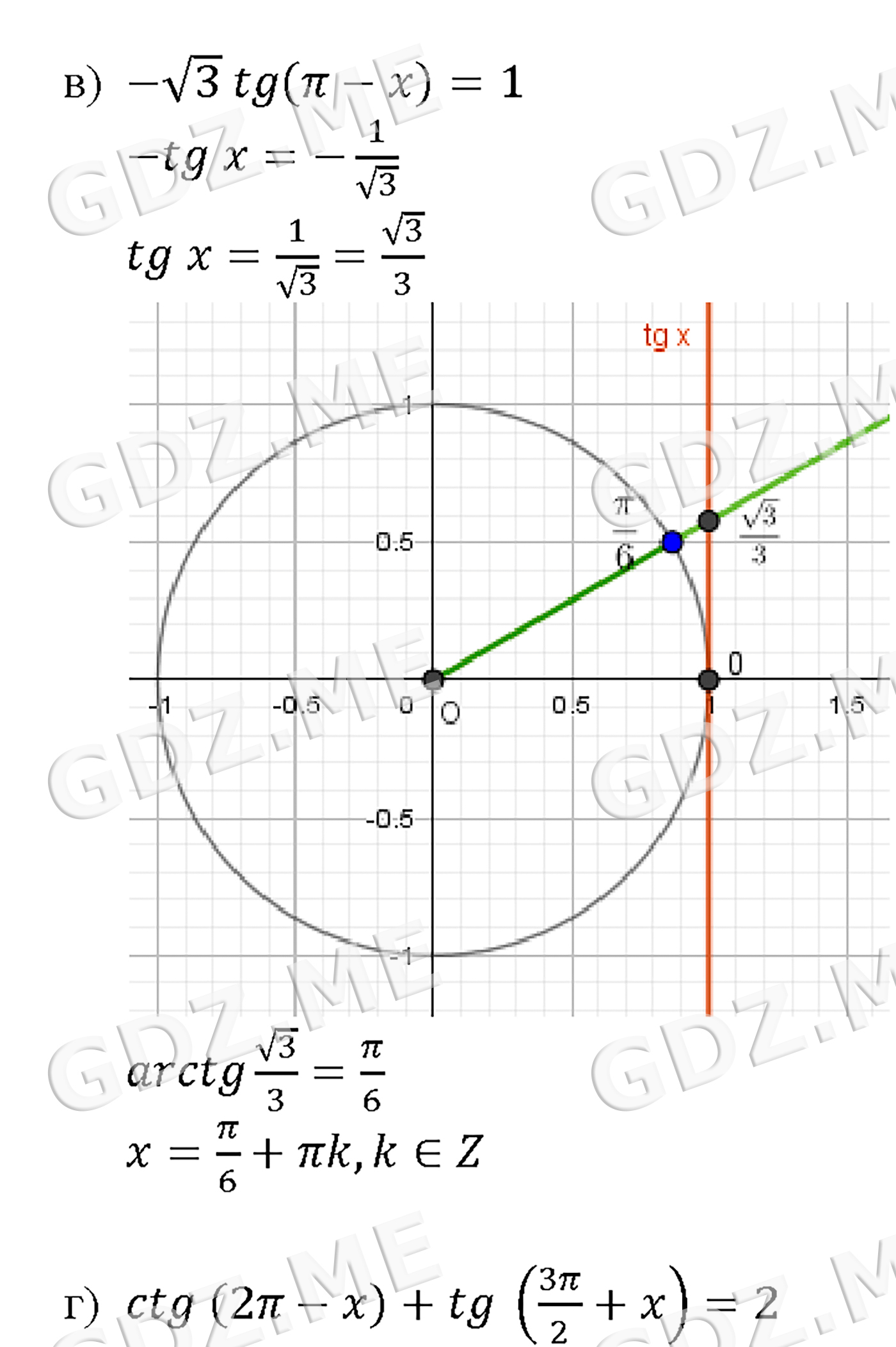 Подробный вариант решения из решебника (ГДЗ): Задание номер 17-9_3 (Глава 2 Тригонометрические функции. Глава 3 Тригонометрические уравнения. §17. Арктангенс и арккотангенс. Решение уравнений tg х = a, ctg х = а) по предмету Алгебра, за 10 класс, авторы учебника Мордкович, Александрова.
