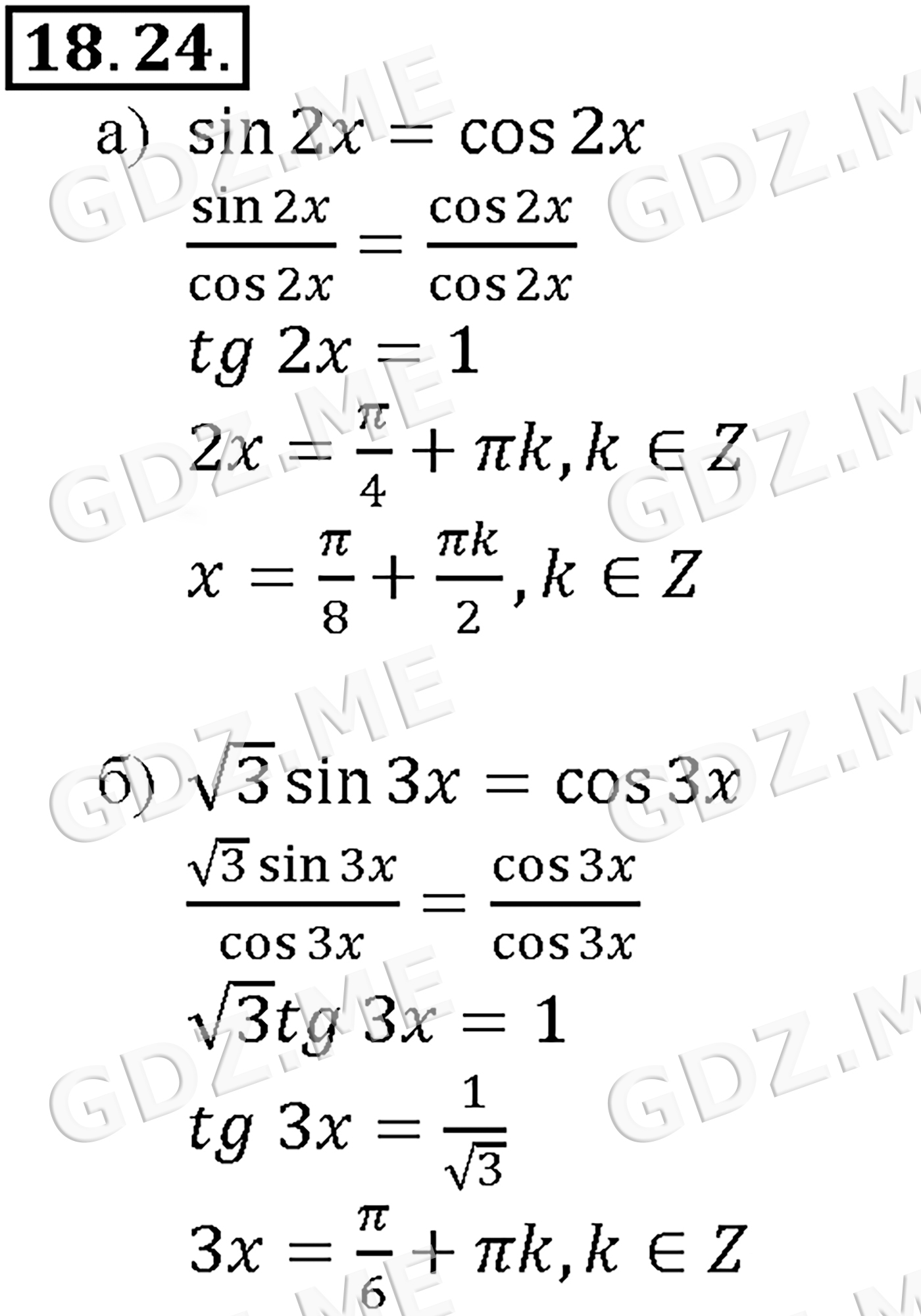Подробный вариант решения из решебника (ГДЗ): Задание номер 18-24_1 (Глава 2 Тригонометрические функции. Глава 3 Тригонометрические уравнения. §18. Тригонометрические уравнения) по предмету Алгебра, за 10 класс, авторы учебника Мордкович, Александрова.