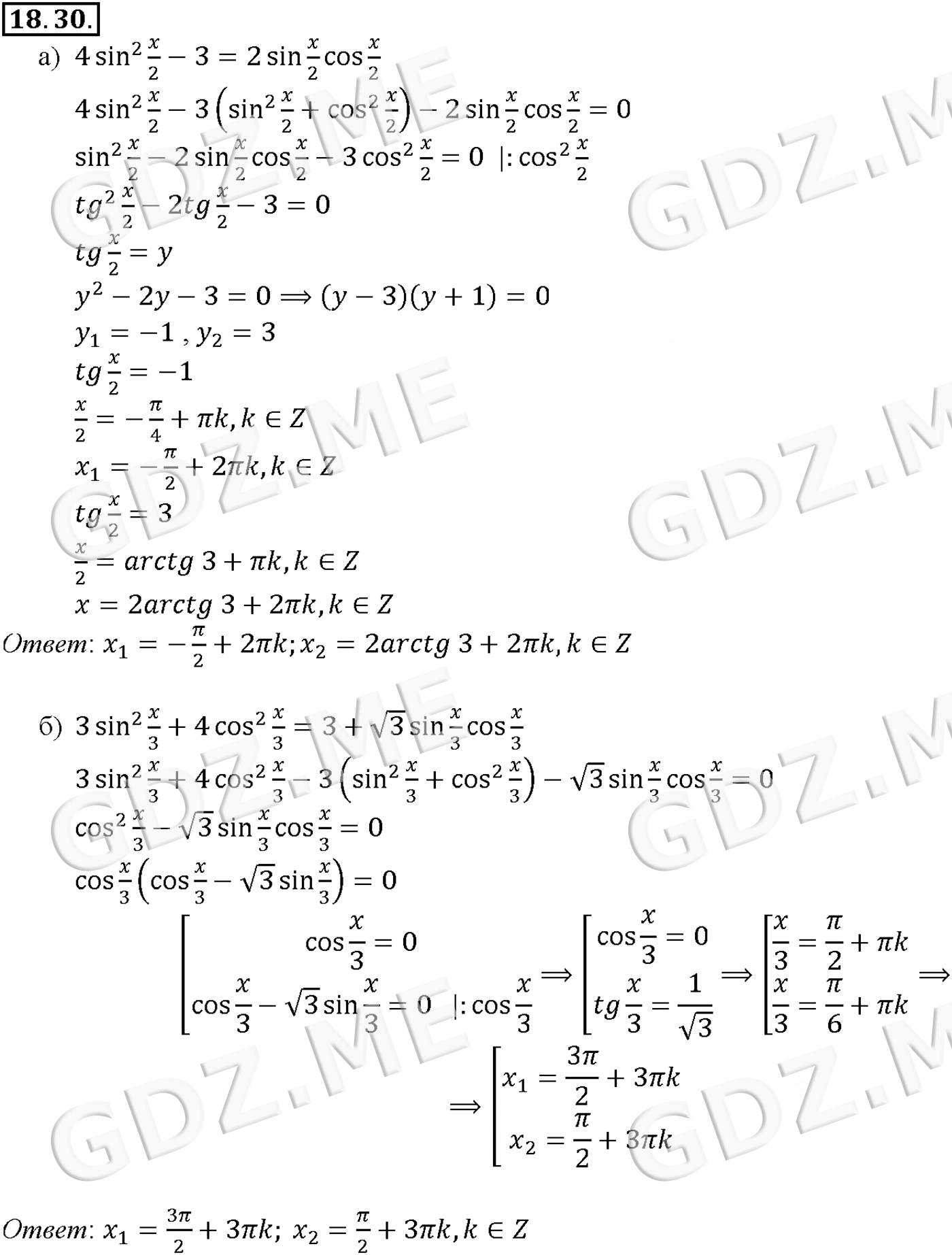 Подробный вариант решения из решебника (ГДЗ): Задание номер 18-30 (Глава 2 Тригонометрические функции. Глава 3 Тригонометрические уравнения. §18. Тригонометрические уравнения) по предмету Алгебра, за 10 класс, авторы учебника Мордкович, Александрова.
