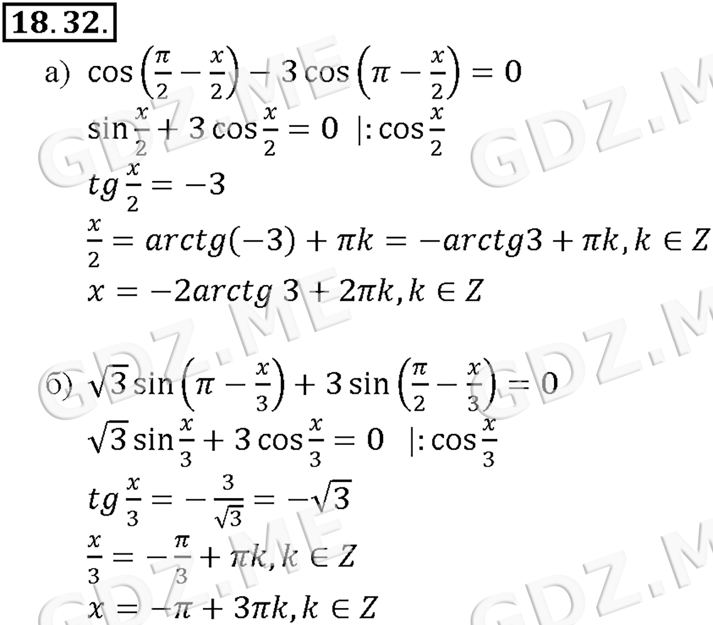 Подробный вариант решения из решебника (ГДЗ): Задание номер 18-32 (Глава 2 Тригонометрические функции. Глава 3 Тригонометрические уравнения. §18. Тригонометрические уравнения) по предмету Алгебра, за 10 класс, авторы учебника Мордкович, Александрова.