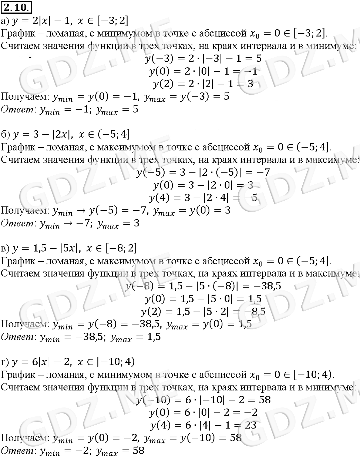 Подробный вариант решения из решебника (ГДЗ): Задание номер 2-10 (Глава 1 Числовые функции. §2. Свойства функций) по предмету Алгебра, за 10 класс, авторы учебника Мордкович, Александрова.