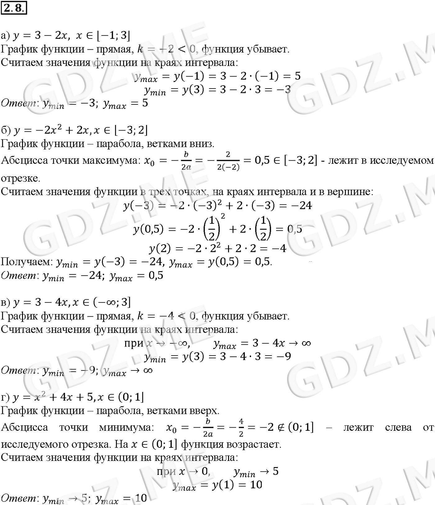 Подробный вариант решения из решебника (ГДЗ): Задание номер 2-8 (Глава 1 Числовые функции. §2. Свойства функций) по предмету Алгебра, за 10 класс, авторы учебника Мордкович, Александрова.