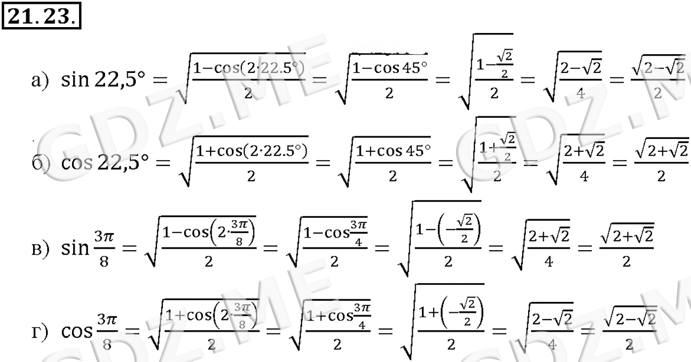 Подробный вариант решения из решебника (ГДЗ): Задание номер 21-23 (Глава 3 Тригонометрические уравнения. Глава 4 Преобразование тригонометрических выражений. §21. Формулы двойного аргумента) по предмету Алгебра, за 10 класс, авторы учебника Мордкович, Александрова.