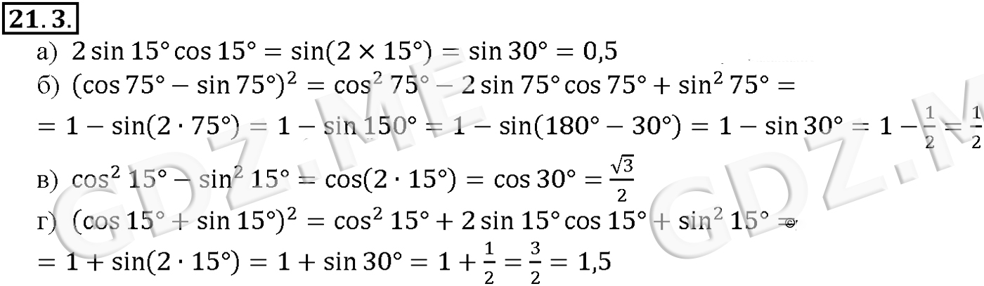 Подробный вариант решения из решебника (ГДЗ): Задание номер 21-3 (Глава 3 Тригонометрические уравнения. Глава 4 Преобразование тригонометрических выражений. §21. Формулы двойного аргумента) по предмету Алгебра, за 10 класс, авторы учебника Мордкович, Александрова.