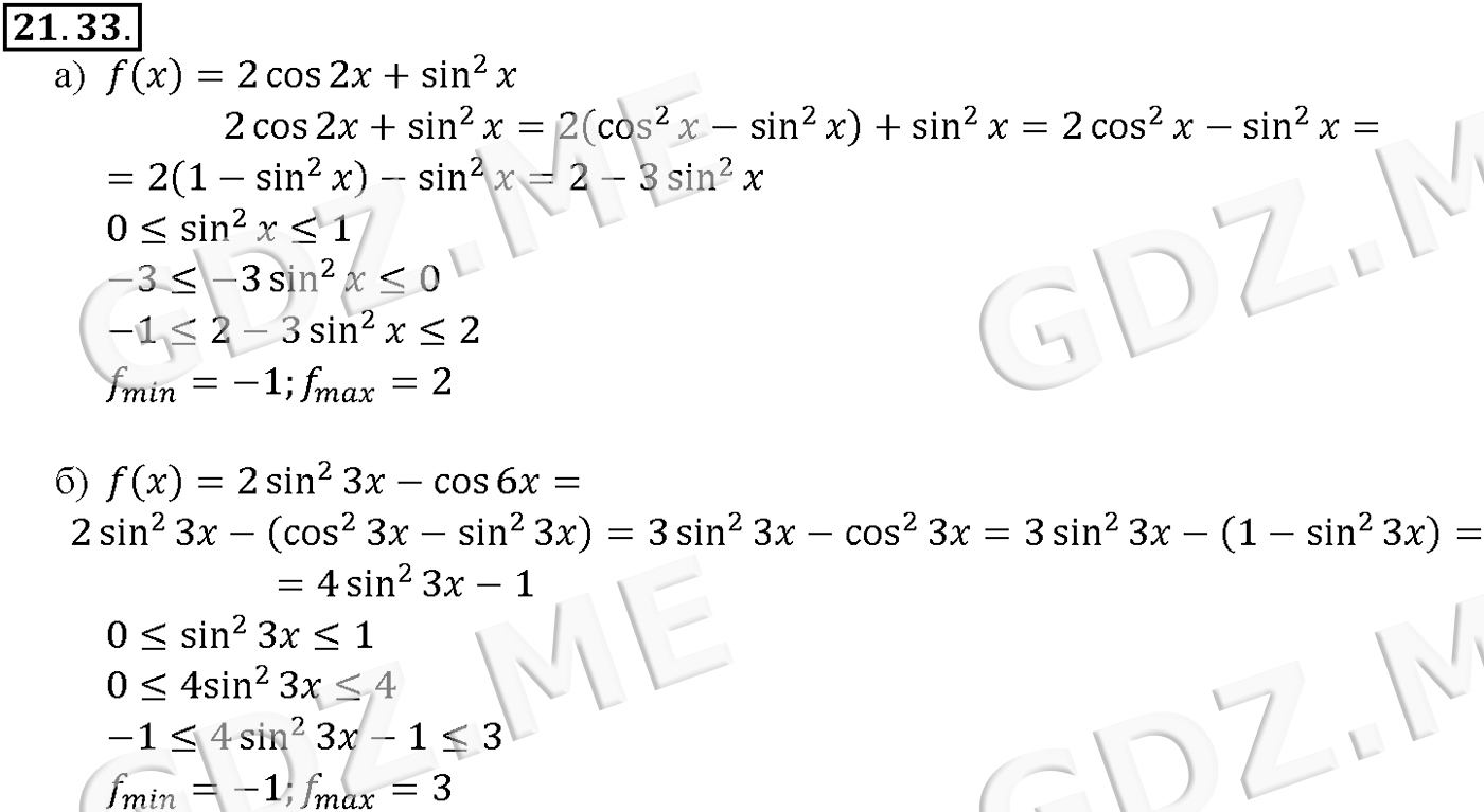 Подробный вариант решения из решебника (ГДЗ): Задание номер 21-33 (Глава 3 Тригонометрические уравнения. Глава 4 Преобразование тригонометрических выражений. §21. Формулы двойного аргумента) по предмету Алгебра, за 10 класс, авторы учебника Мордкович, Александрова.
