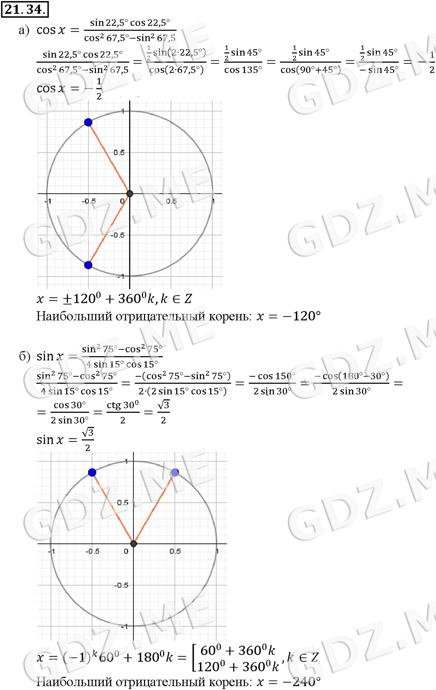 Подробный вариант решения из решебника (ГДЗ): Задание номер 21-34 (Глава 3 Тригонометрические уравнения. Глава 4 Преобразование тригонометрических выражений. §21. Формулы двойного аргумента) по предмету Алгебра, за 10 класс, авторы учебника Мордкович, Александрова.