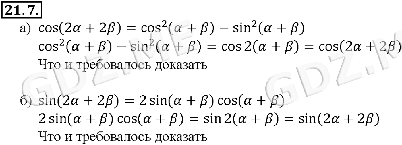 Подробный вариант решения из решебника (ГДЗ): Задание номер 21-7 (Глава 3 Тригонометрические уравнения. Глава 4 Преобразование тригонометрических выражений. §21. Формулы двойного аргумента) по предмету Алгебра, за 10 класс, авторы учебника Мордкович, Александрова.