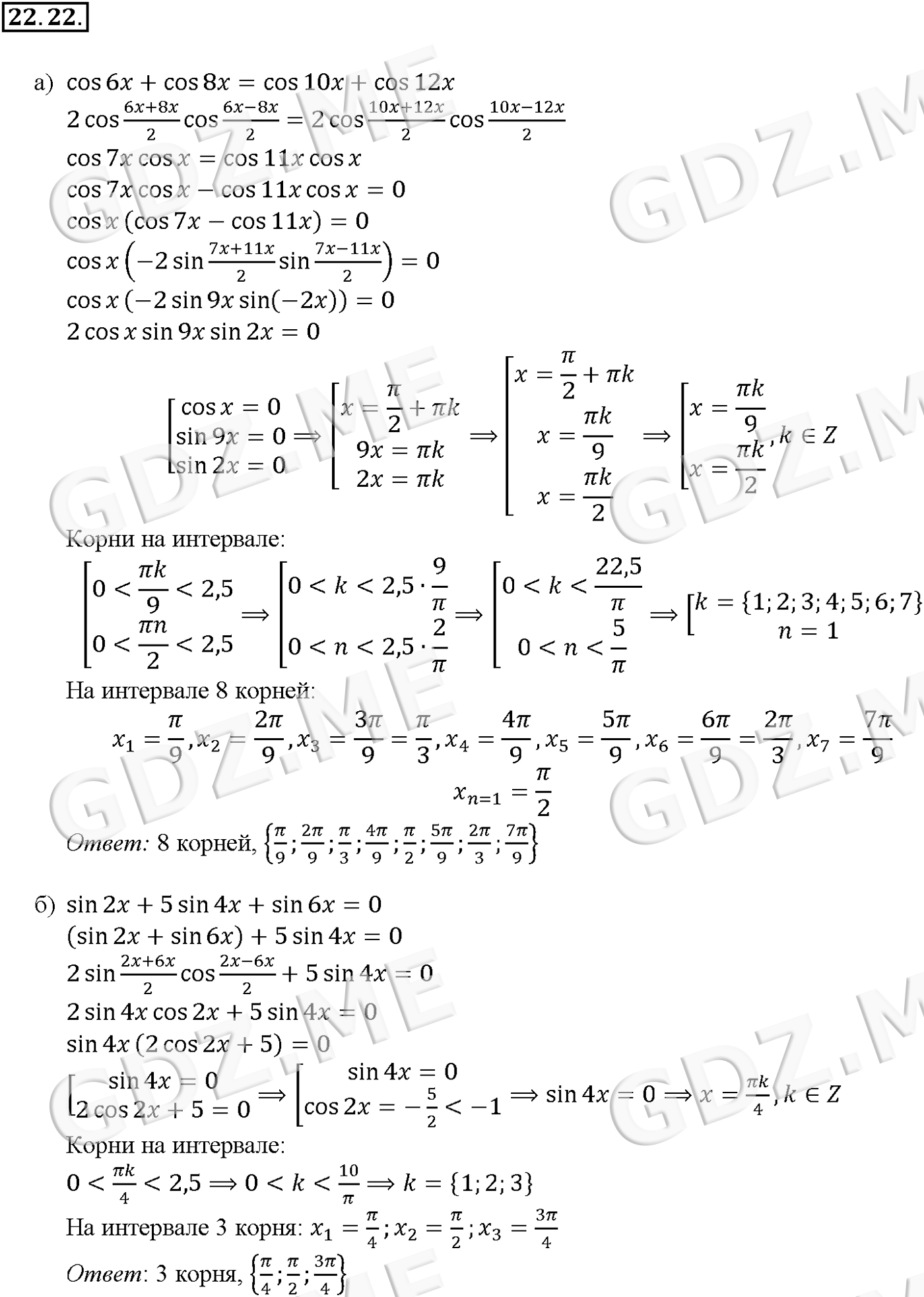 Подробный вариант решения из решебника (ГДЗ): Задание номер 22-22 (Глава 3 Тригонометрические уравнения. Глава 4 Преобразование тригонометрических выражений. §22. Преобразование сумм тригонометрических функций в произведения) по предмету Алгебра, за 10 класс, авторы учебника Мордкович, Александрова.