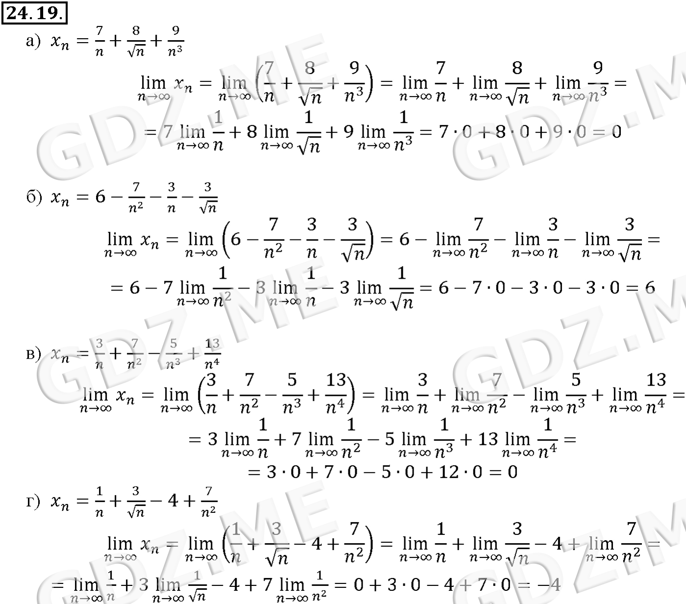 Подробный вариант решения из решебника (ГДЗ): Задание номер 24-19 (Глава 4 Преобразование тригонометрических выражений. Глава 5 Производная. §24. Предел последовательности) по предмету Алгебра, за 10 класс, авторы учебника Мордкович, Александрова.