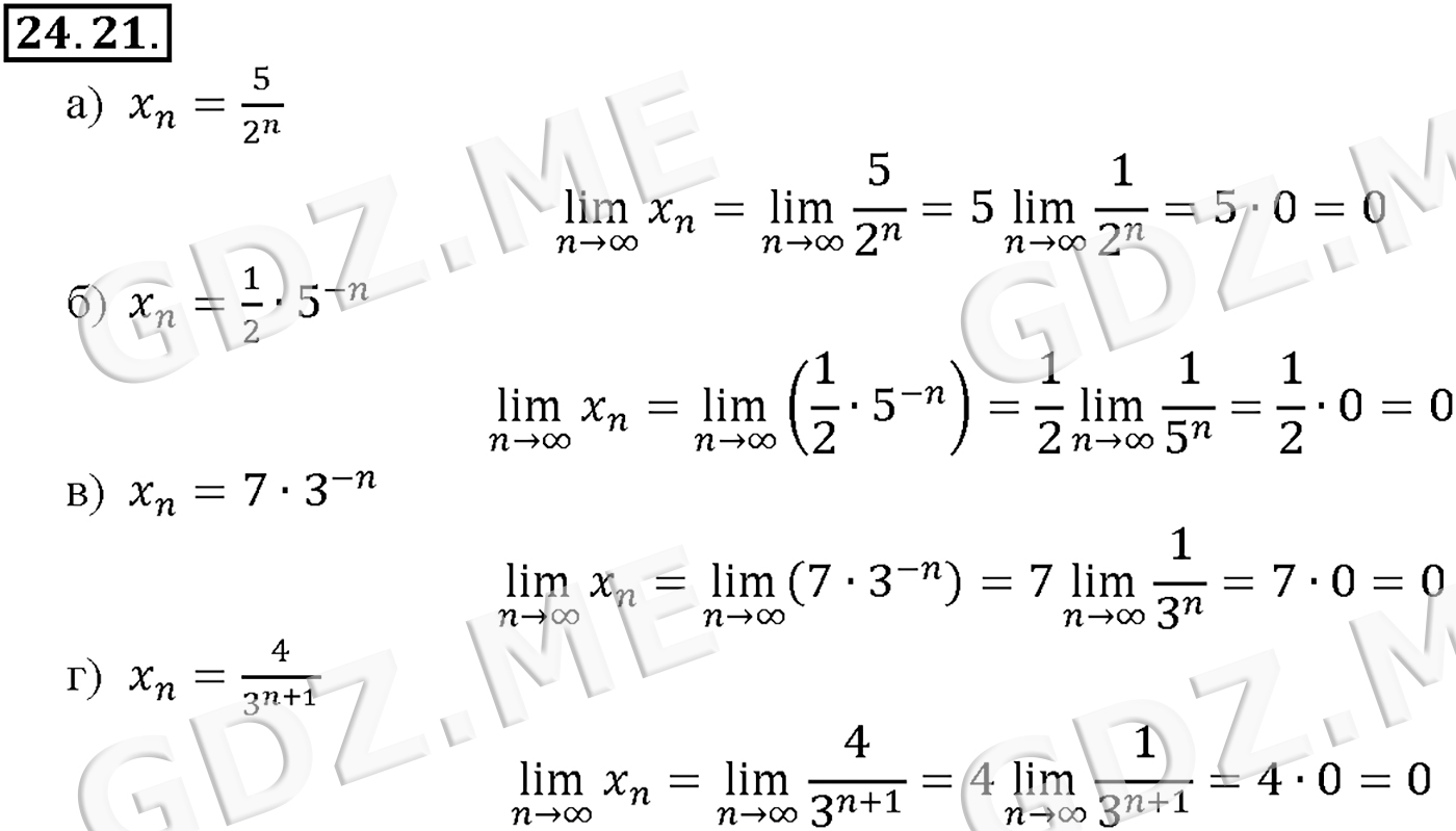 Подробный вариант решения из решебника (ГДЗ): Задание номер 24-21 (Глава 4 Преобразование тригонометрических выражений. Глава 5 Производная. §24. Предел последовательности) по предмету Алгебра, за 10 класс, авторы учебника Мордкович, Александрова.