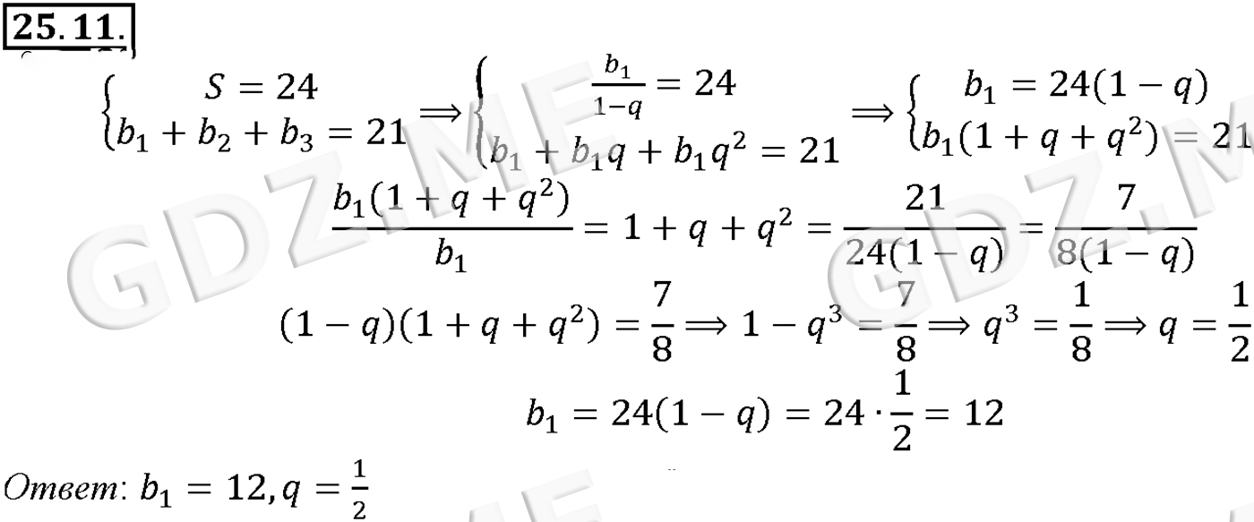 Подробный вариант решения из решебника (ГДЗ): Задание номер 25-11 (Глава 4 Преобразование тригонометрических выражений. Глава 5 Производная. §25. Сумма бесконечной геометрической прогрессии) по предмету Алгебра, за 10 класс, авторы учебника Мордкович, Александрова.