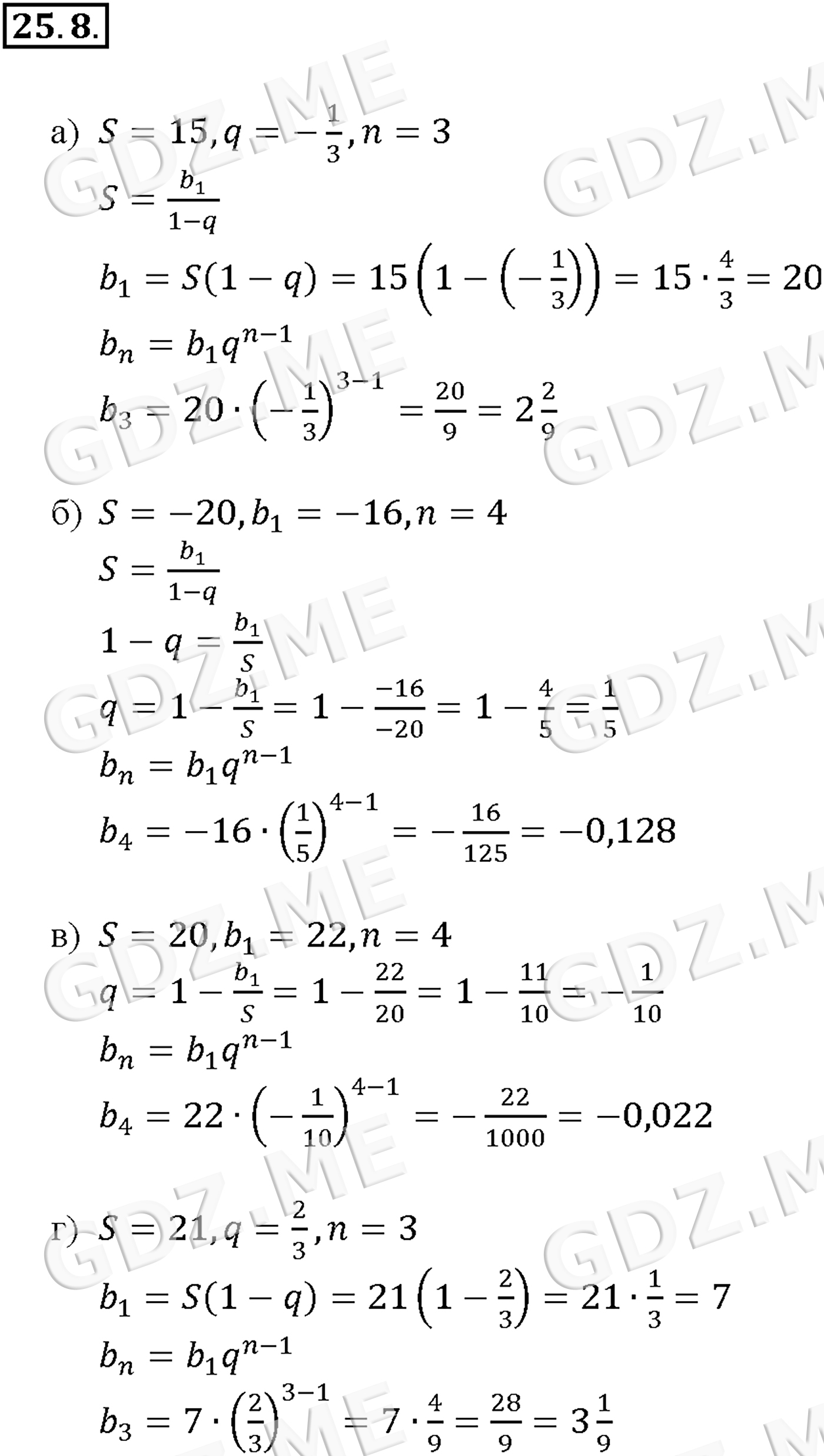 Подробный вариант решения из решебника (ГДЗ): Задание номер 25-8 (Глава 4 Преобразование тригонометрических выражений. Глава 5 Производная. §25. Сумма бесконечной геометрической прогрессии) по предмету Алгебра, за 10 класс, авторы учебника Мордкович, Александрова.