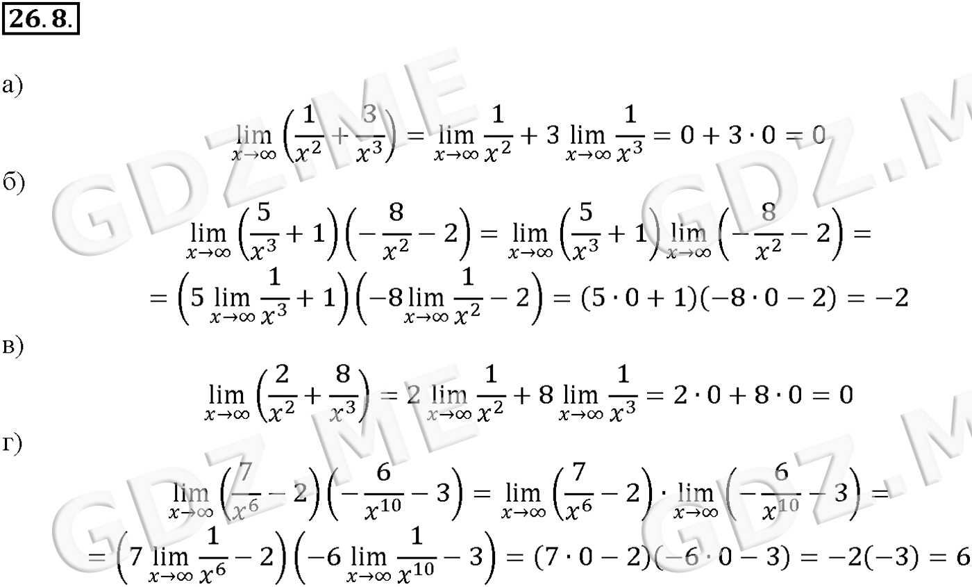 Подробный вариант решения из решебника (ГДЗ): Задание номер 26-8 (Глава 4 Преобразование тригонометрических выражений. Глава 5 Производная. §26. Предел функции) по предмету Алгебра, за 10 класс, авторы учебника Мордкович, Александрова.