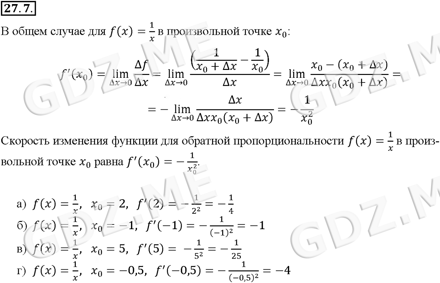 Подробный вариант решения из решебника (ГДЗ): Задание номер 27-7 (Глава 4 Преобразование тригонометрических выражений. Глава 5 Производная. §27. Определение производной) по предмету Алгебра, за 10 класс, авторы учебника Мордкович, Александрова.