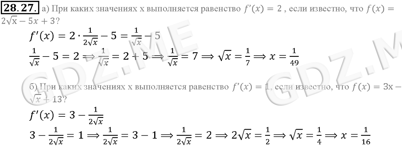 Подробный вариант решения из решебника (ГДЗ): Задание номер 28-27 (Глава 4 Преобразование тригонометрических выражений. Глава 5 Производная. §28. Вычисление производных) по предмету Алгебра, за 10 класс, авторы учебника Мордкович, Александрова.