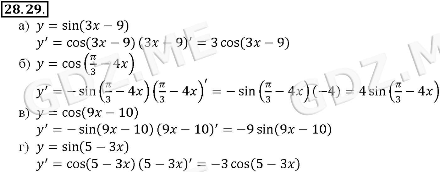 Подробный вариант решения из решебника (ГДЗ): Задание номер 28-29 (Глава 4 Преобразование тригонометрических выражений. Глава 5 Производная. §28. Вычисление производных) по предмету Алгебра, за 10 класс, авторы учебника Мордкович, Александрова.