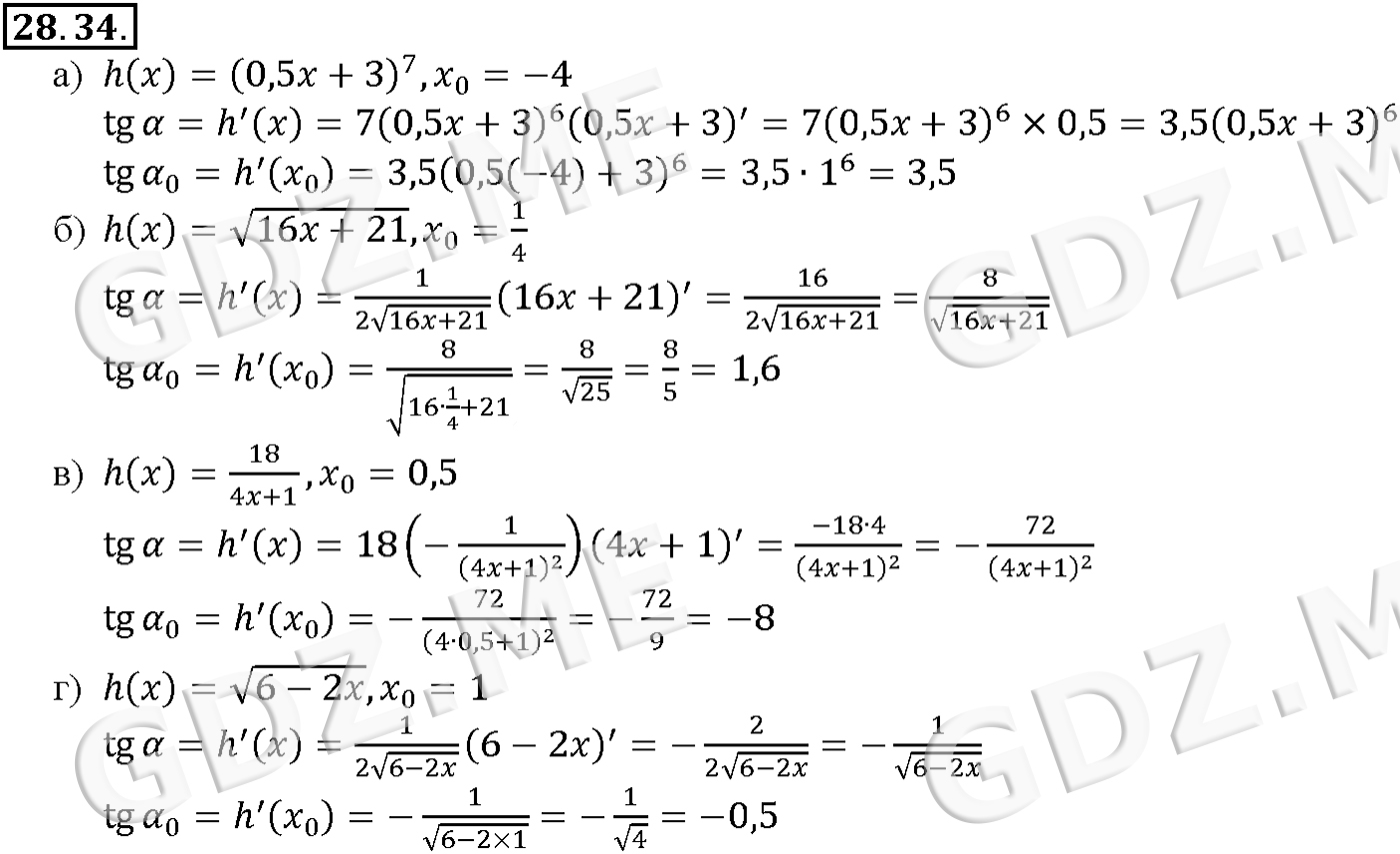 Подробный вариант решения из решебника (ГДЗ): Задание номер 28-34 (Глава 4 Преобразование тригонометрических выражений. Глава 5 Производная. §28. Вычисление производных) по предмету Алгебра, за 10 класс, авторы учебника Мордкович, Александрова.