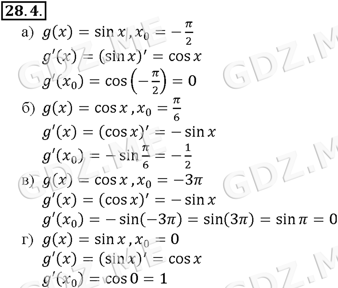 Подробный вариант решения из решебника (ГДЗ): Задание номер 28-4 (Глава 4 Преобразование тригонометрических выражений. Глава 5 Производная. §28. Вычисление производных) по предмету Алгебра, за 10 класс, авторы учебника Мордкович, Александрова.