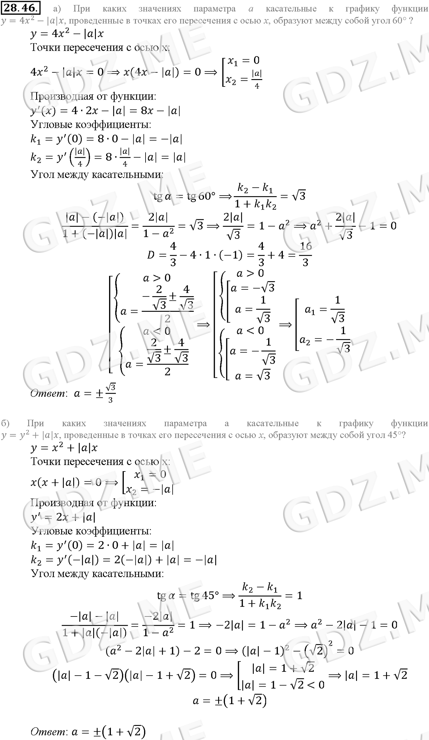 Подробный вариант решения из решебника (ГДЗ): Задание номер 28-46 (Глава 4 Преобразование тригонометрических выражений. Глава 5 Производная. §28. Вычисление производных) по предмету Алгебра, за 10 класс, авторы учебника Мордкович, Александрова.