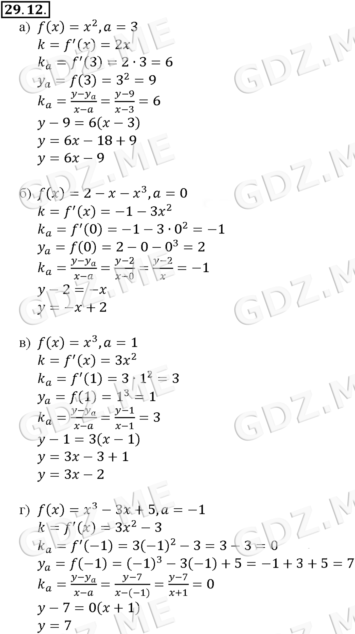 Подробный вариант решения из решебника (ГДЗ): Задание номер 29-12 (Глава 4 Преобразование тригонометрических выражений. Глава 5 Производная. §29. Уравнение касательной к графику функции) по предмету Алгебра, за 10 класс, авторы учебника Мордкович, Александрова.
