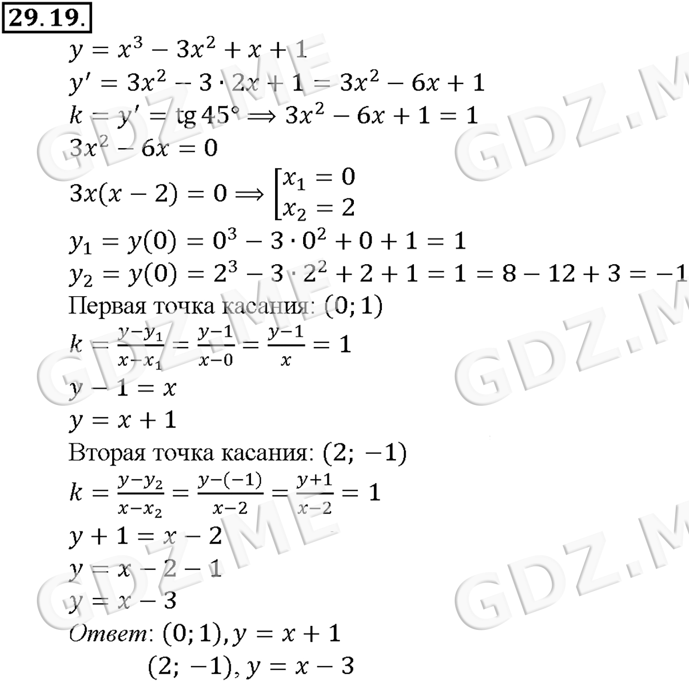 Подробный вариант решения из решебника (ГДЗ): Задание номер 29-19 (Глава 4 Преобразование тригонометрических выражений. Глава 5 Производная. §29. Уравнение касательной к графику функции) по предмету Алгебра, за 10 класс, авторы учебника Мордкович, Александрова.