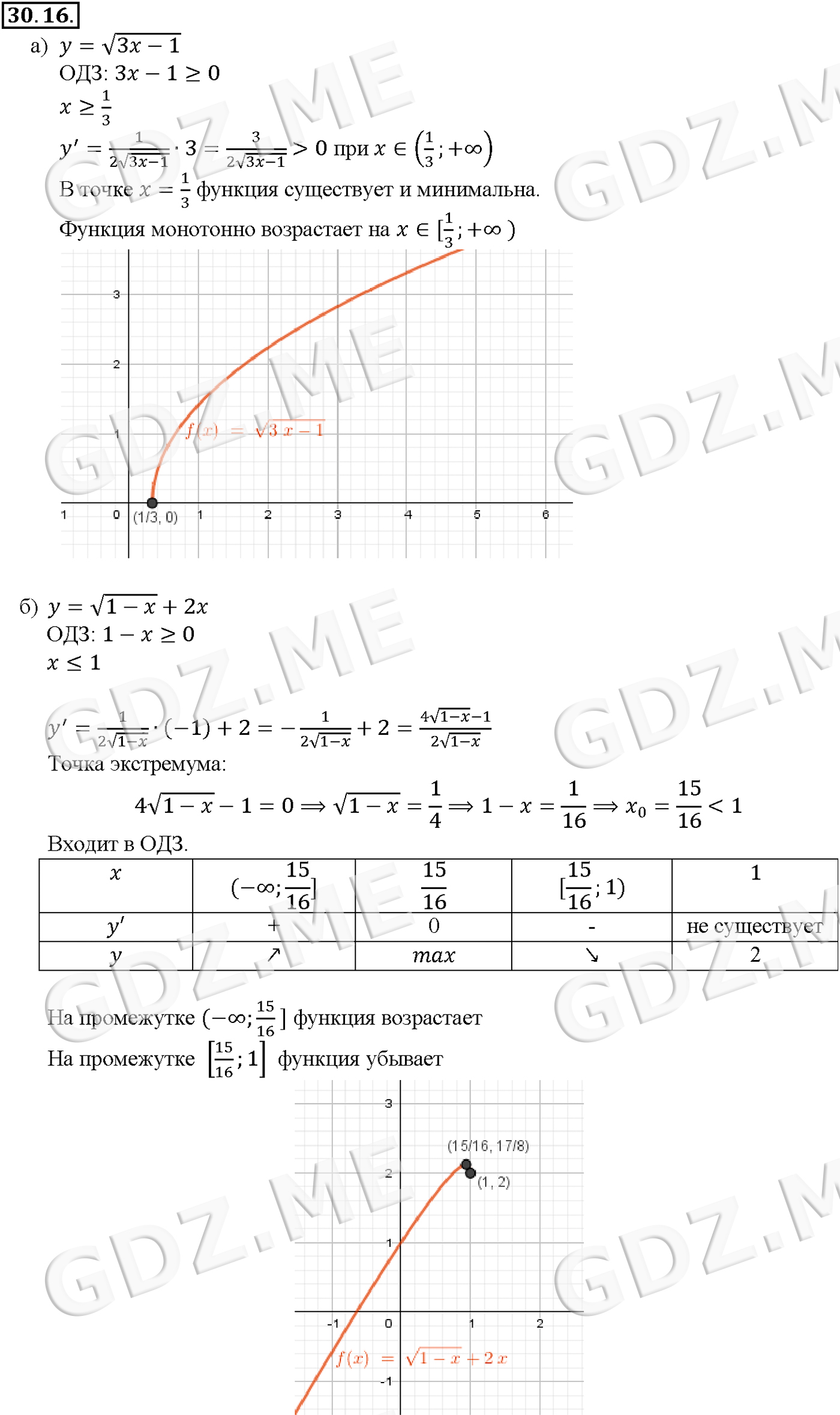 Подробный вариант решения из решебника (ГДЗ): Задание номер 30-16_1 (Глава 4 Преобразование тригонометрических выражений. Глава 5 Производная. §30. Применение производной для исследования функций на монотонность и экстремумы) по предмету Алгебра, за 10 класс, авторы учебника Мордкович, Александрова.