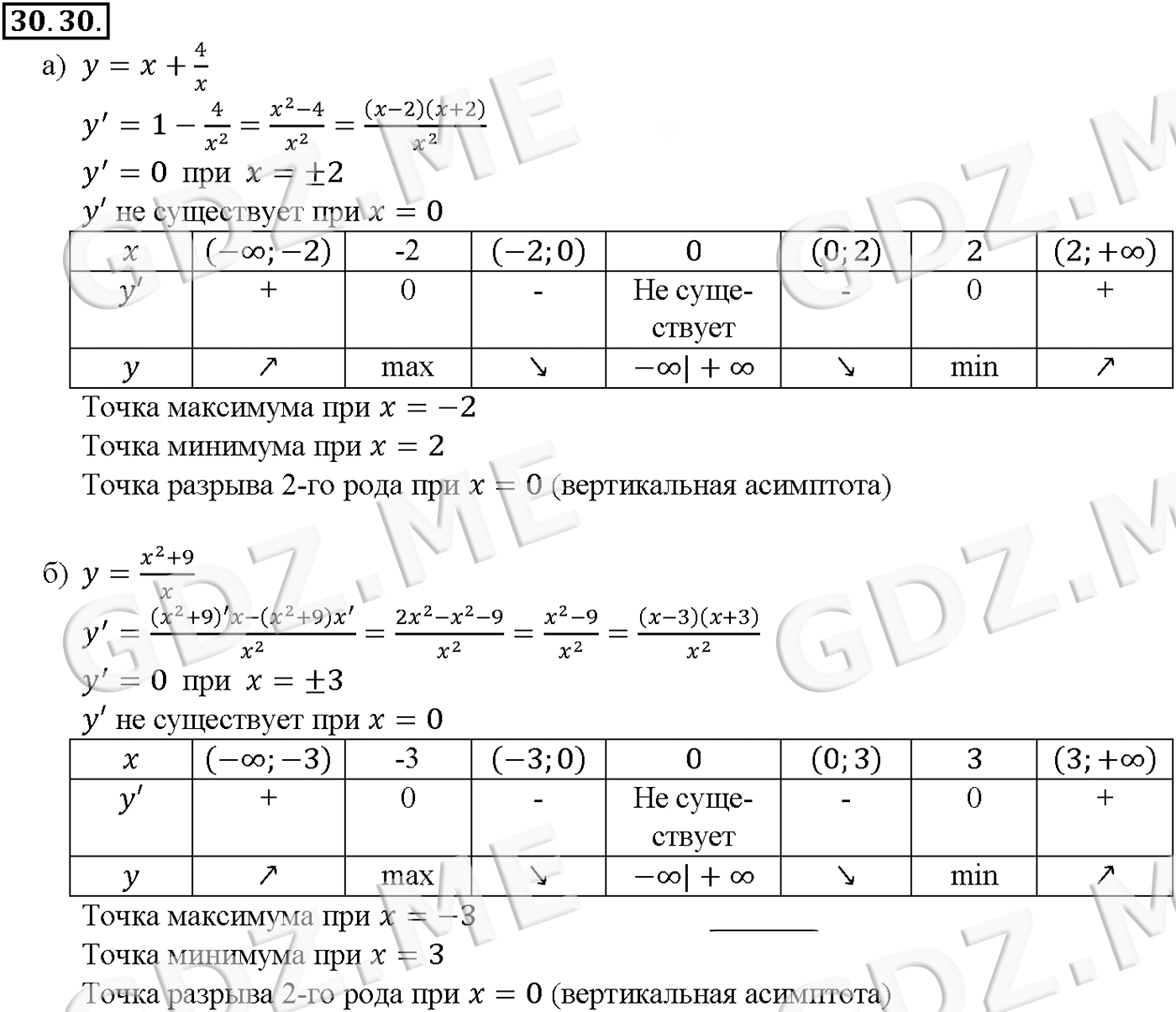 Подробный вариант решения из решебника (ГДЗ): Задание номер 30-30 (Глава 4 Преобразование тригонометрических выражений. Глава 5 Производная. §30. Применение производной для исследования функций на монотонность и экстремумы) по предмету Алгебра, за 10 класс, авторы учебника Мордкович, Александрова.