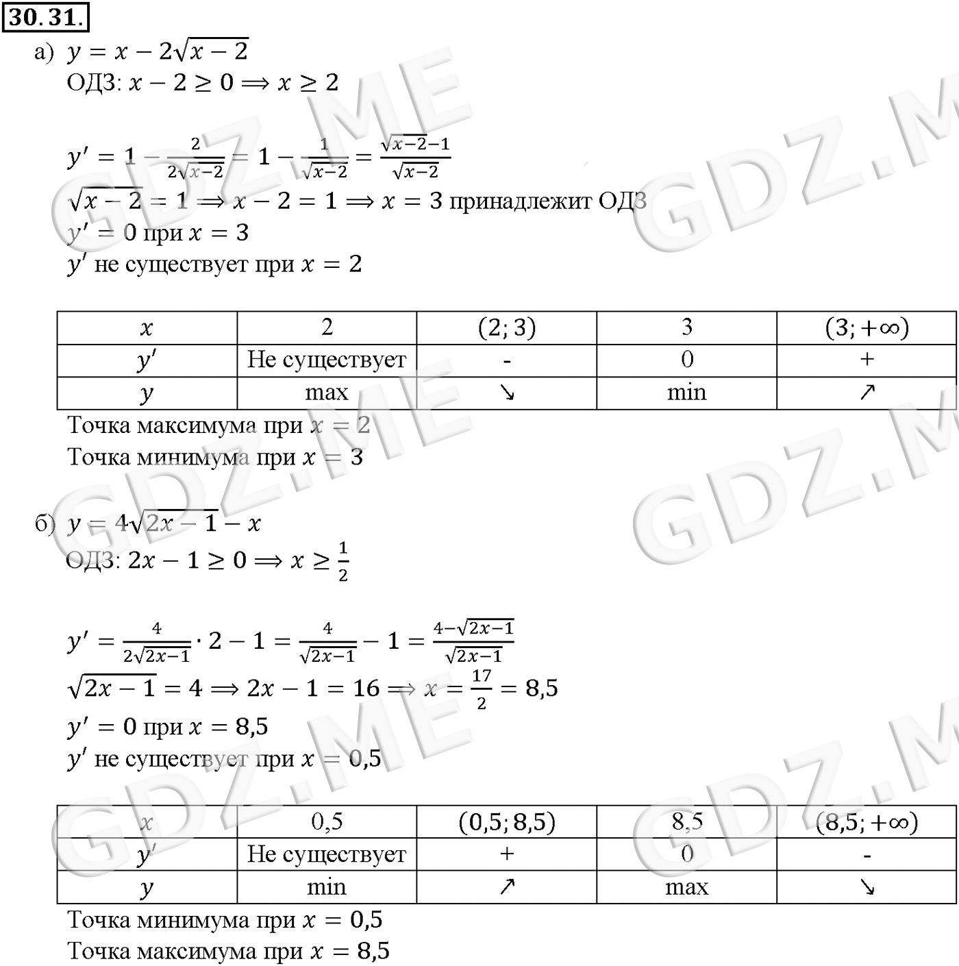 Подробный вариант решения из решебника (ГДЗ): Задание номер 30-31 (Глава 4 Преобразование тригонометрических выражений. Глава 5 Производная. §30. Применение производной для исследования функций на монотонность и экстремумы) по предмету Алгебра, за 10 класс, авторы учебника Мордкович, Александрова.