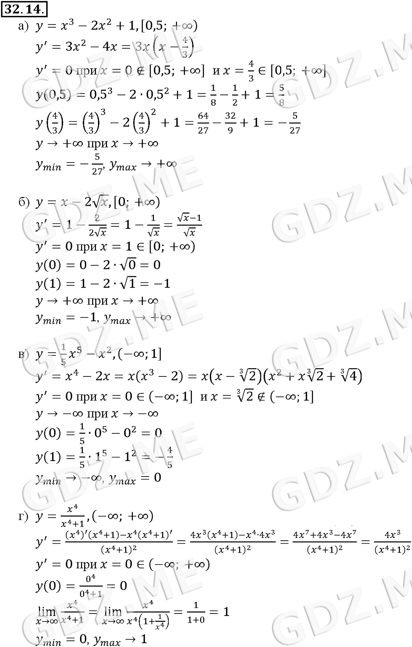 Подробный вариант решения из решебника (ГДЗ): Задание номер 32-14 (Глава 4 Преобразование тригонометрических выражений. Глава 5 Производная. §32. Применение производной для нахождения наибольших и наименьших значений величин) по предмету Алгебра, за 10 класс, авторы учебника Мордкович, Александрова.