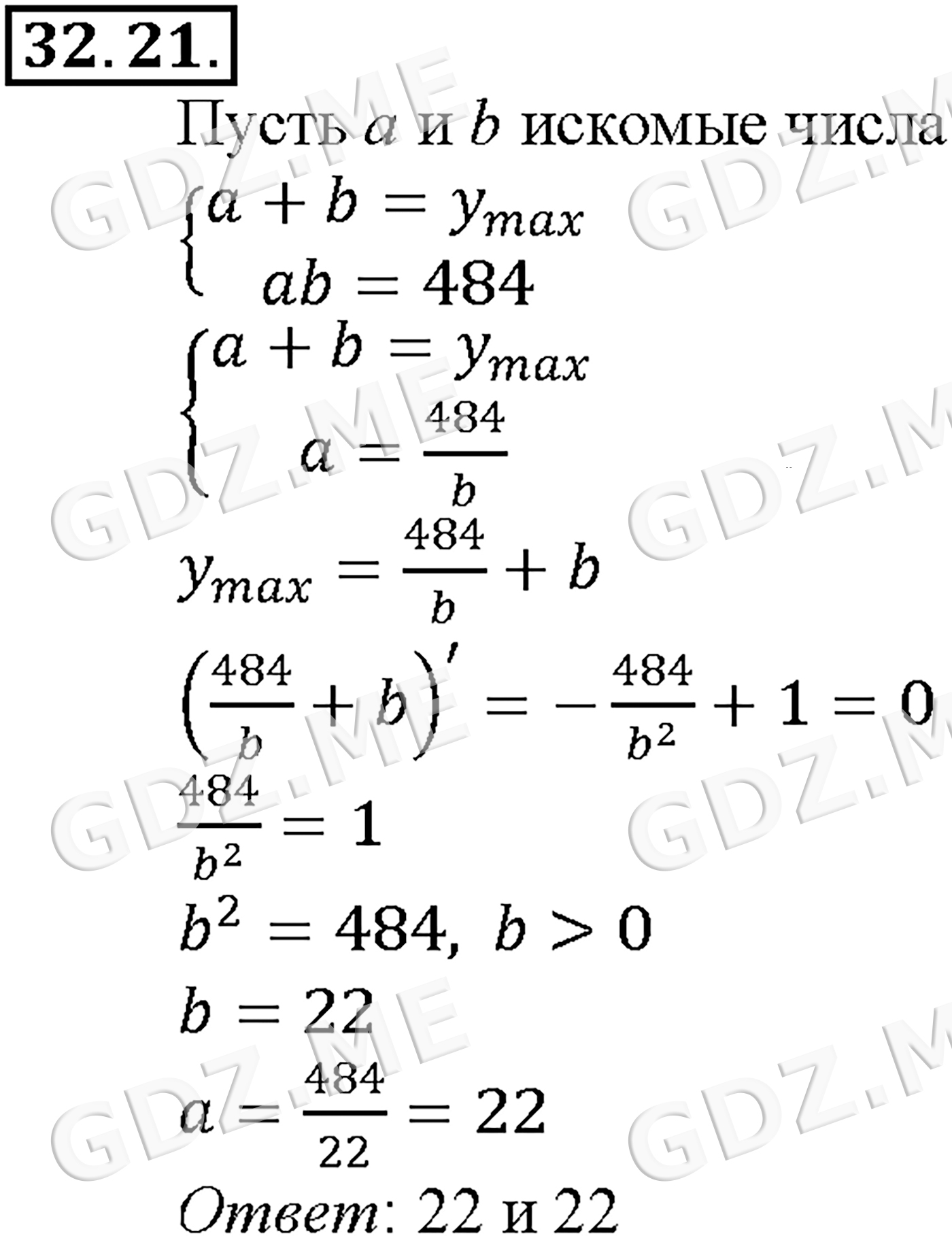 Подробный вариант решения из решебника (ГДЗ): Задание номер 32-21 (Глава 4 Преобразование тригонометрических выражений. Глава 5 Производная. §32. Применение производной для нахождения наибольших и наименьших значений величин) по предмету Алгебра, за 10 класс, авторы учебника Мордкович, Александрова.