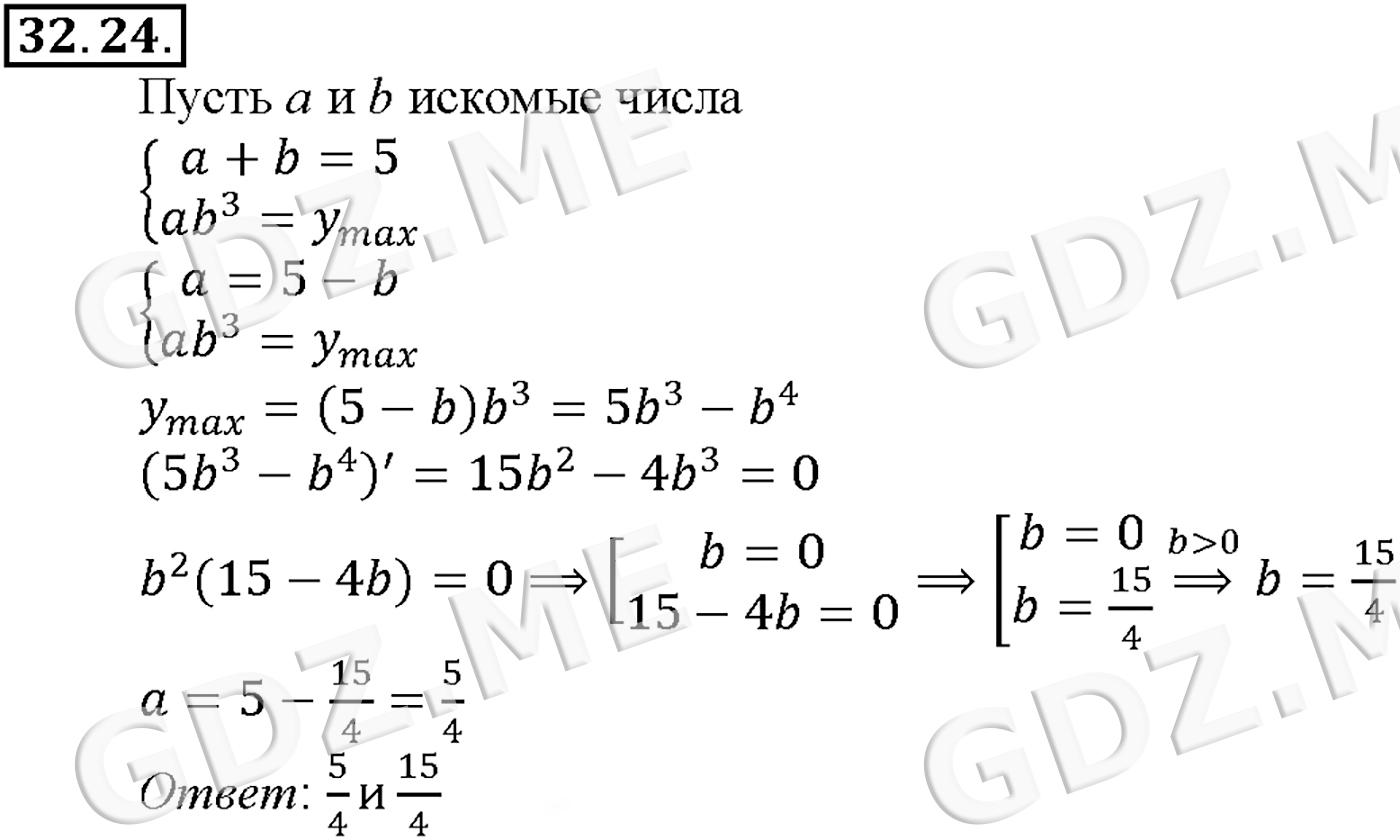 Подробный вариант решения из решебника (ГДЗ): Задание номер 32-24 (Глава 4 Преобразование тригонометрических выражений. Глава 5 Производная. §32. Применение производной для нахождения наибольших и наименьших значений величин) по предмету Алгебра, за 10 класс, авторы учебника Мордкович, Александрова.