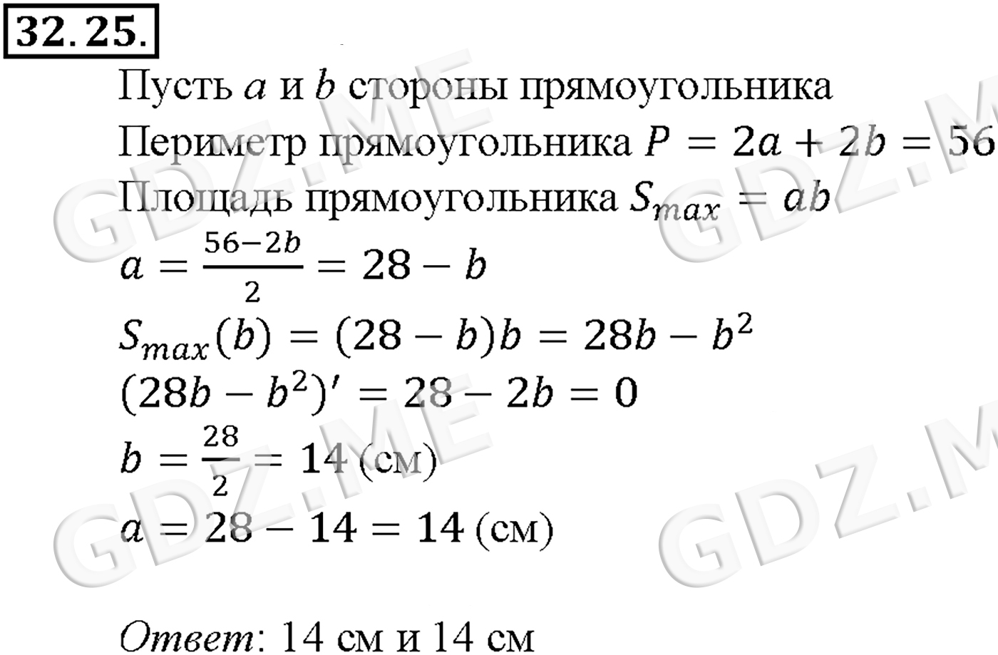 Подробный вариант решения из решебника (ГДЗ): Задание номер 32-25 (Глава 4 Преобразование тригонометрических выражений. Глава 5 Производная. §32. Применение производной для нахождения наибольших и наименьших значений величин) по предмету Алгебра, за 10 класс, авторы учебника Мордкович, Александрова.