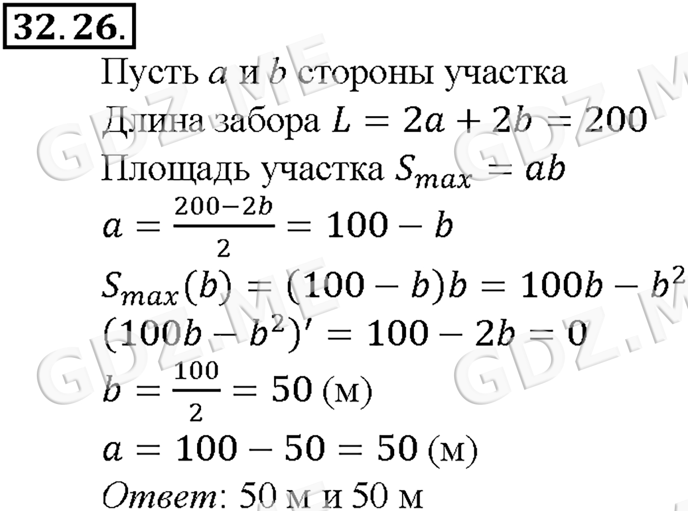 Подробный вариант решения из решебника (ГДЗ): Задание номер 32-26 (Глава 4 Преобразование тригонометрических выражений. Глава 5 Производная. §32. Применение производной для нахождения наибольших и наименьших значений величин) по предмету Алгебра, за 10 класс, авторы учебника Мордкович, Александрова.