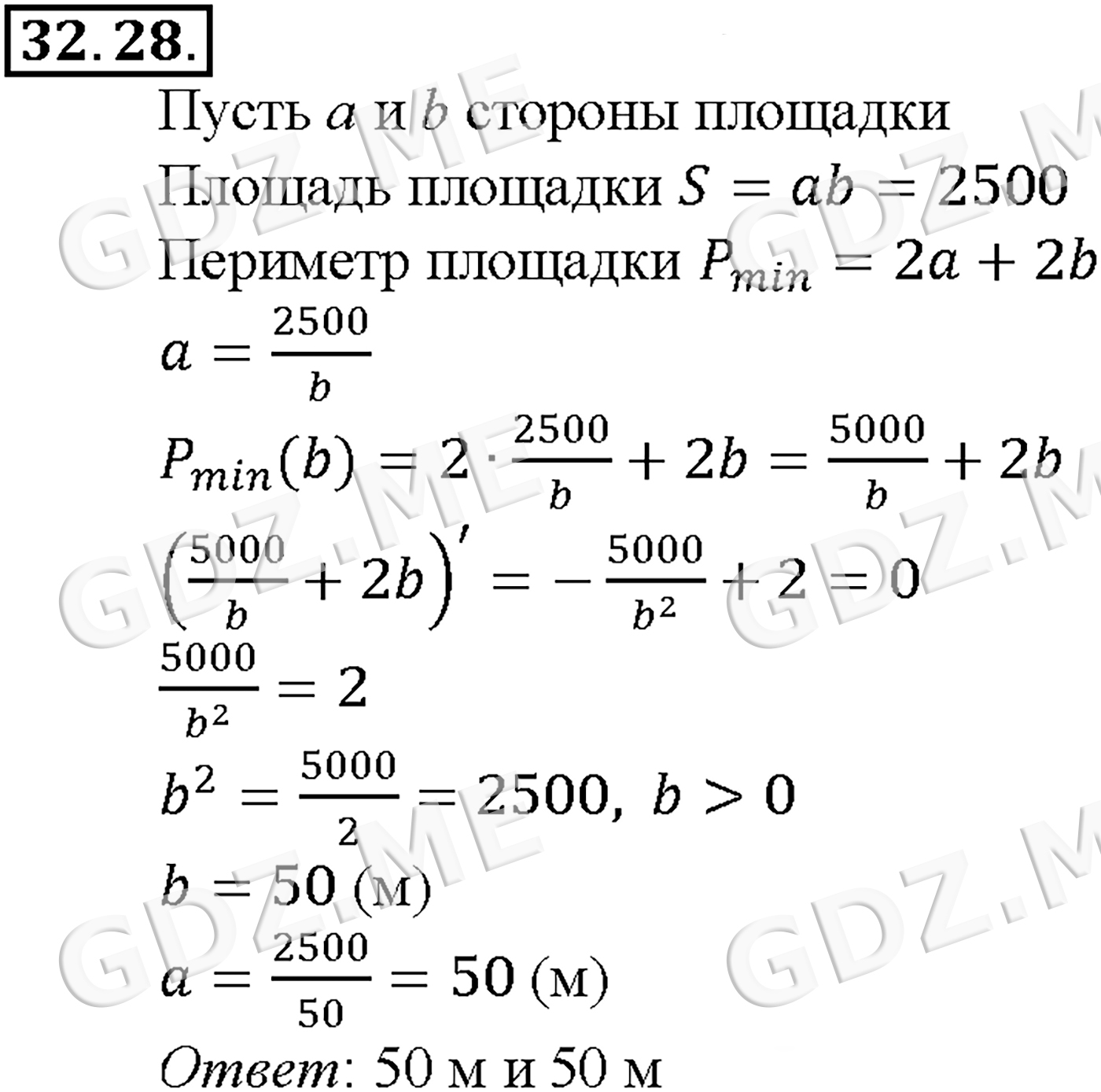Подробный вариант решения из решебника (ГДЗ): Задание номер 32-28 (Глава 4 Преобразование тригонометрических выражений. Глава 5 Производная. §32. Применение производной для нахождения наибольших и наименьших значений величин) по предмету Алгебра, за 10 класс, авторы учебника Мордкович, Александрова.