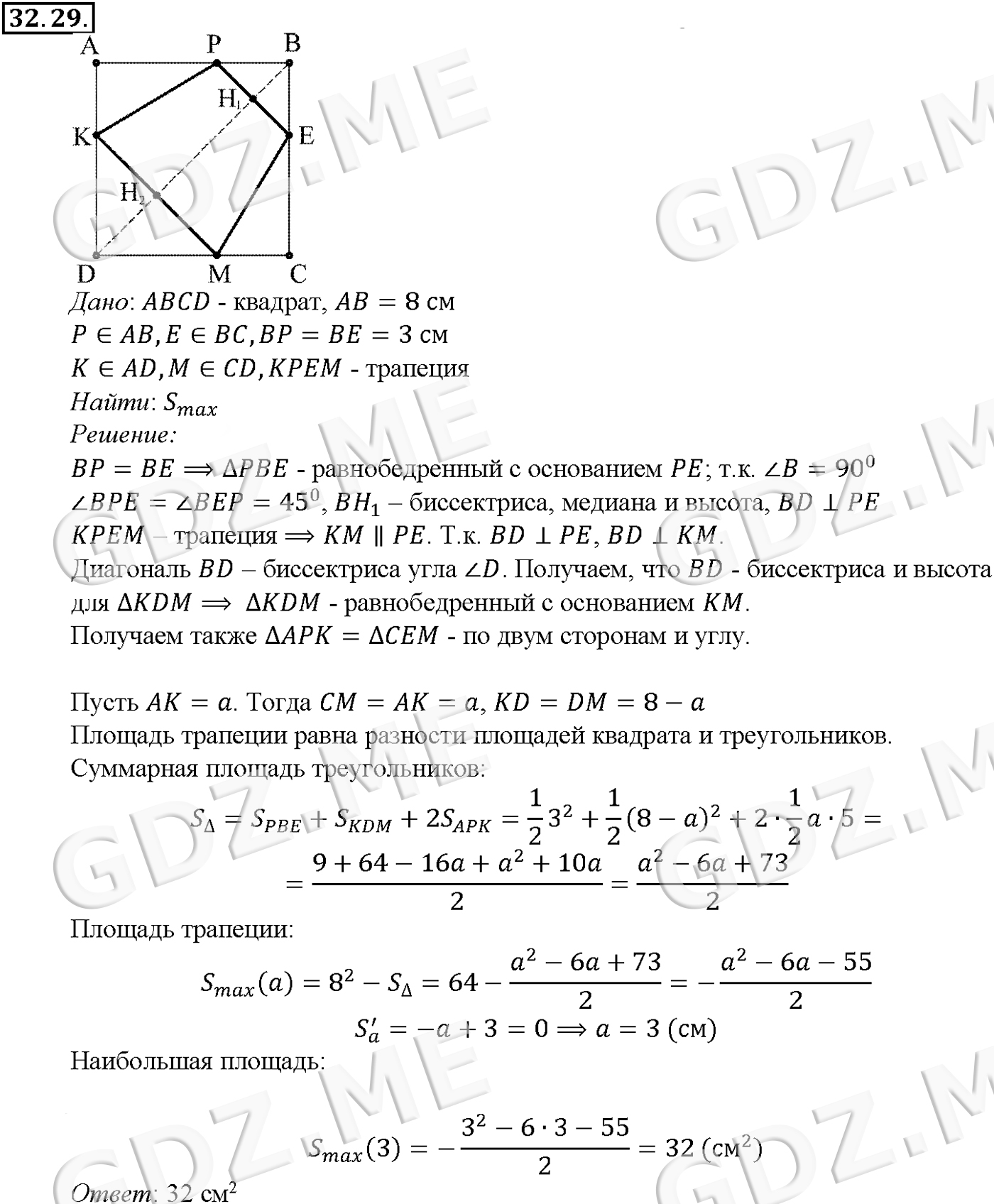 Подробный вариант решения из решебника (ГДЗ): Задание номер 32-29 (Глава 4 Преобразование тригонометрических выражений. Глава 5 Производная. §32. Применение производной для нахождения наибольших и наименьших значений величин) по предмету Алгебра, за 10 класс, авторы учебника Мордкович, Александрова.