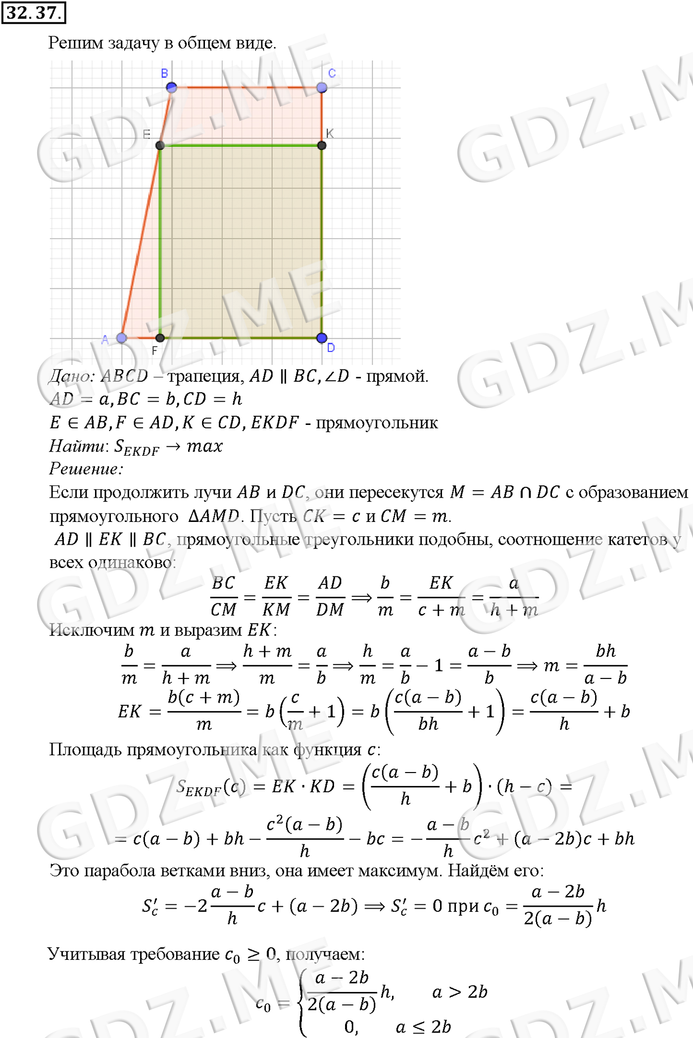 Подробный вариант решения из решебника (ГДЗ): Задание номер 32-37_1 (Глава 4 Преобразование тригонометрических выражений. Глава 5 Производная. §32. Применение производной для нахождения наибольших и наименьших значений величин) по предмету Алгебра, за 10 класс, авторы учебника Мордкович, Александрова.