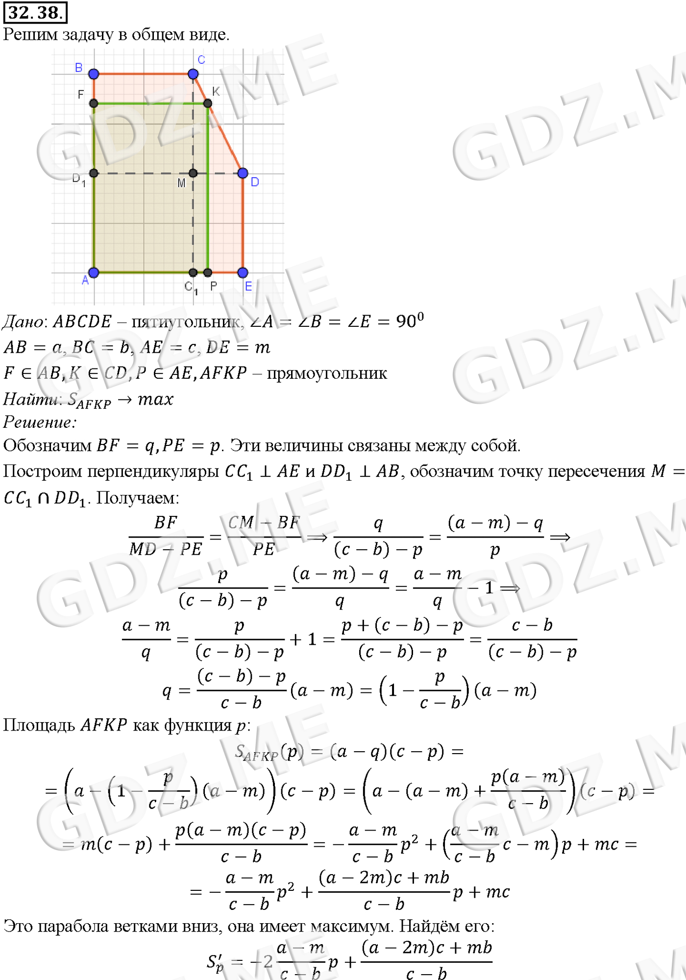 Подробный вариант решения из решебника (ГДЗ): Задание номер 32-38_1 (Глава 4 Преобразование тригонометрических выражений. Глава 5 Производная. §32. Применение производной для нахождения наибольших и наименьших значений величин) по предмету Алгебра, за 10 класс, авторы учебника Мордкович, Александрова.