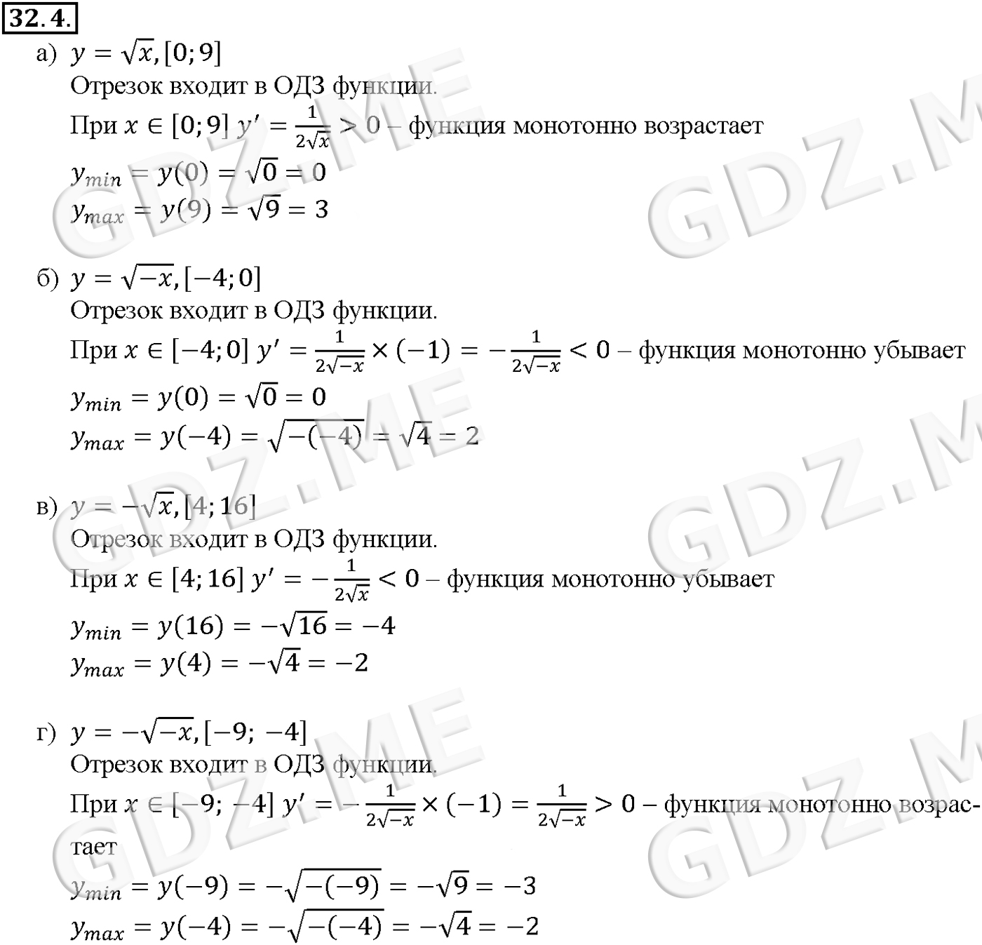 Подробный вариант решения из решебника (ГДЗ): Задание номер 32-4 (Глава 4 Преобразование тригонометрических выражений. Глава 5 Производная. §32. Применение производной для нахождения наибольших и наименьших значений величин) по предмету Алгебра, за 10 класс, авторы учебника Мордкович, Александрова.
