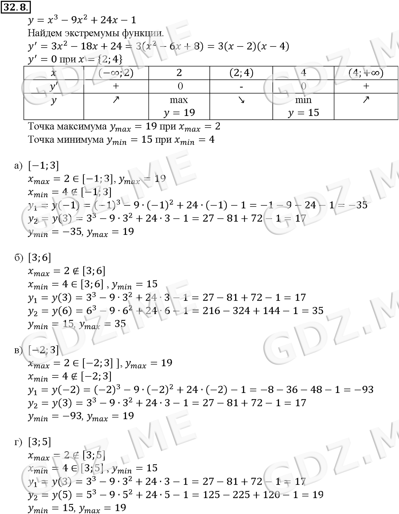 Подробный вариант решения из решебника (ГДЗ): Задание номер 32-8 (Глава 4 Преобразование тригонометрических выражений. Глава 5 Производная. §32. Применение производной для нахождения наибольших и наименьших значений величин) по предмету Алгебра, за 10 класс, авторы учебника Мордкович, Александрова.
