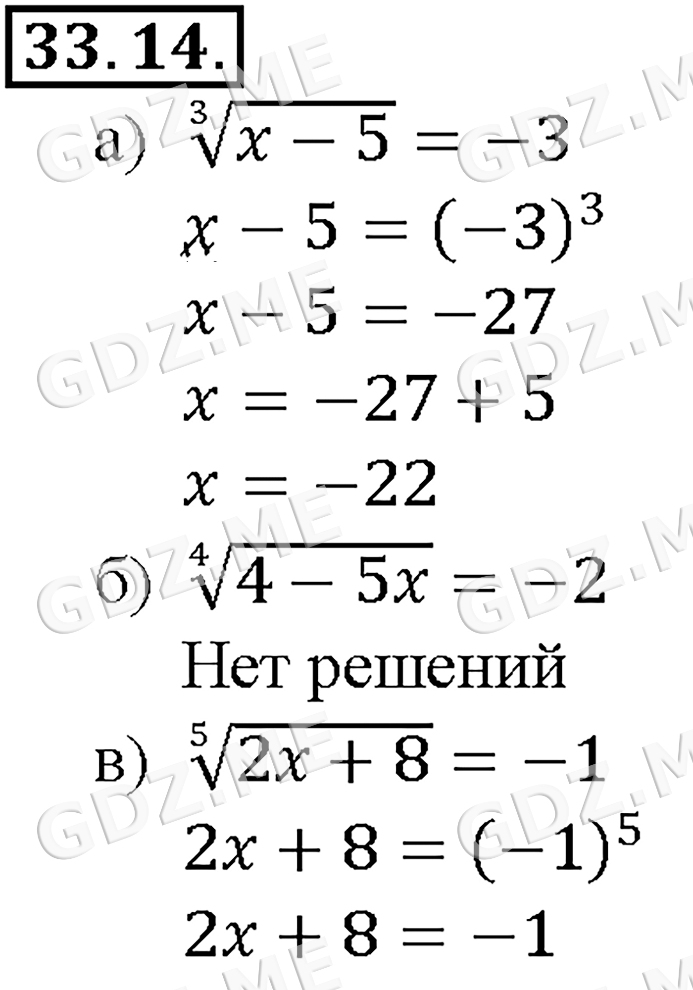 Подробный вариант решения из решебника (ГДЗ): Задание номер 33-14_1 (Глава 5 Производная. Глава 6 Степени и корни. Степенные функции. §33. Понятие корня n.й степени из действительного числа) по предмету Алгебра, за 10 класс, авторы учебника Мордкович, Александрова.