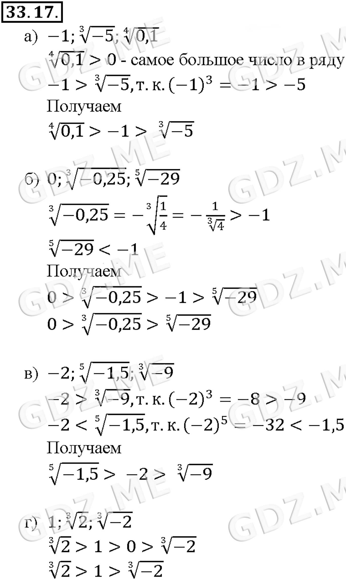 Подробный вариант решения из решебника (ГДЗ): Задание номер 33-17 (Глава 5 Производная. Глава 6 Степени и корни. Степенные функции. §33. Понятие корня n.й степени из действительного числа) по предмету Алгебра, за 10 класс, авторы учебника Мордкович, Александрова.