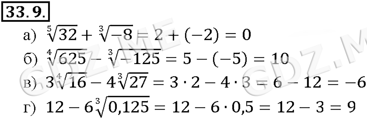 Подробный вариант решения из решебника (ГДЗ): Задание номер 33-9 (Глава 5 Производная. Глава 6 Степени и корни. Степенные функции. §33. Понятие корня n.й степени из действительного числа) по предмету Алгебра, за 10 класс, авторы учебника Мордкович, Александрова.