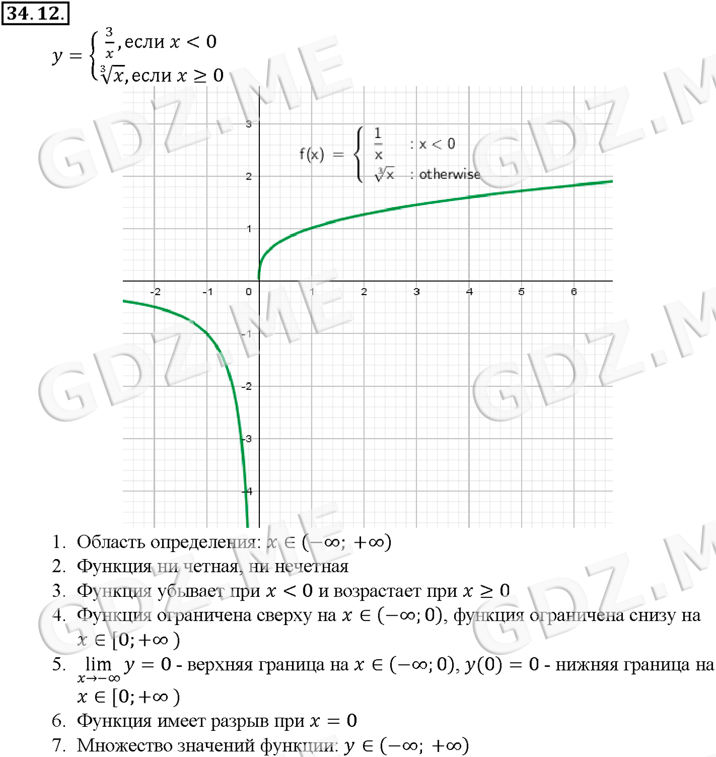 Подробный вариант решения из решебника (ГДЗ): Задание номер 34-12 (Глава 5 Производная. Глава 6 Степени и корни. Степенные функции. §34. Функции у = n/х, их свойства и графики) по предмету Алгебра, за 10 класс, авторы учебника Мордкович, Александрова.