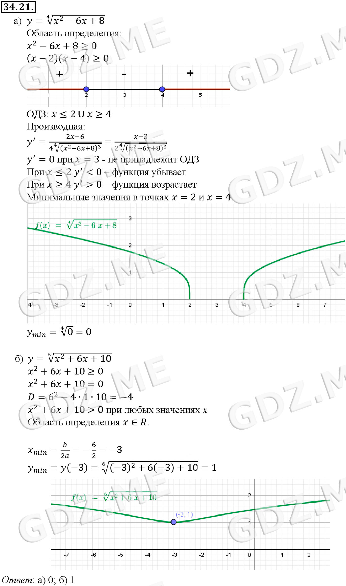Подробный вариант решения из решебника (ГДЗ): Задание номер 34-21 (Глава 5 Производная. Глава 6 Степени и корни. Степенные функции. §34. Функции у = n/х, их свойства и графики) по предмету Алгебра, за 10 класс, авторы учебника Мордкович, Александрова.
