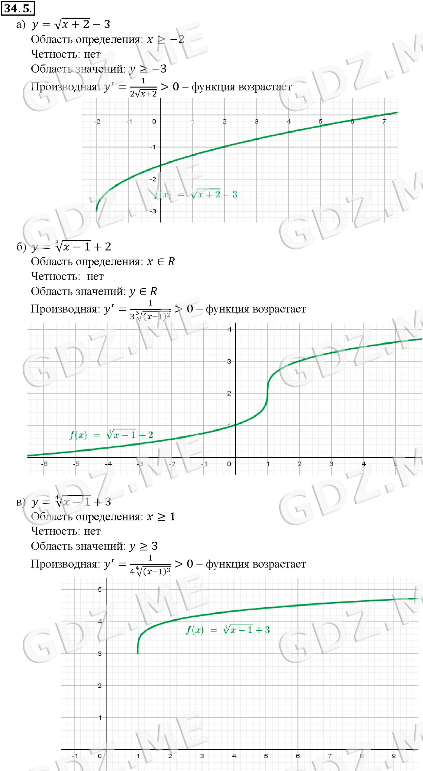 Подробный вариант решения из решебника (ГДЗ): Задание номер 34-5_1 (Глава 5 Производная. Глава 6 Степени и корни. Степенные функции. §34. Функции у = n/х, их свойства и графики) по предмету Алгебра, за 10 класс, авторы учебника Мордкович, Александрова.