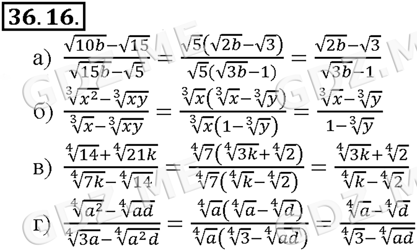 Подробный вариант решения из решебника (ГДЗ): Задание номер 36-16 (Глава 5 Производная. Глава 6 Степени и корни. Степенные функции. §36. Преобразование выражений, содержащих радикалы) по предмету Алгебра, за 10 класс, авторы учебника Мордкович, Александрова.