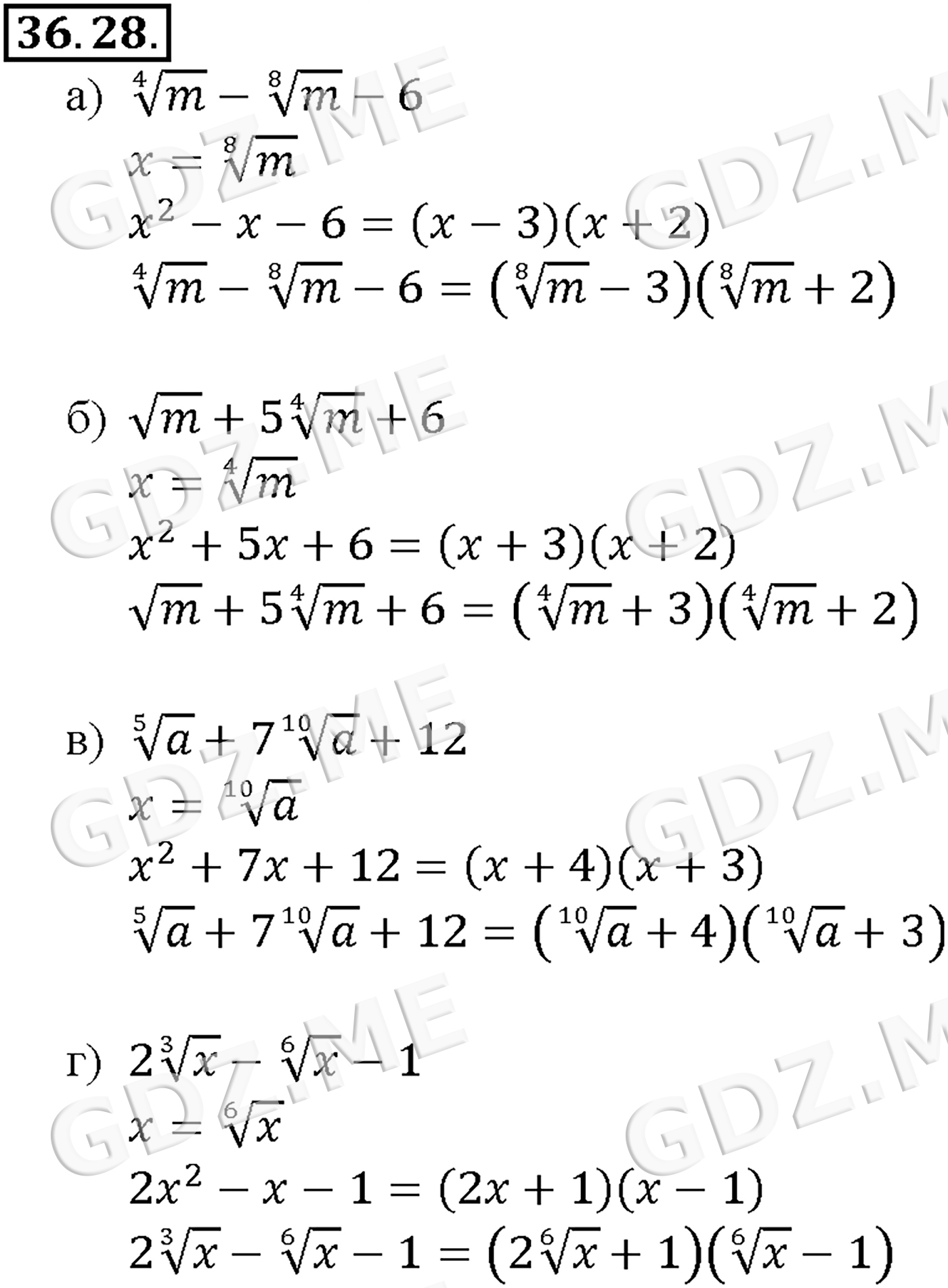 Подробный вариант решения из решебника (ГДЗ): Задание номер 36-28 (Глава 5 Производная. Глава 6 Степени и корни. Степенные функции. §36. Преобразование выражений, содержащих радикалы) по предмету Алгебра, за 10 класс, авторы учебника Мордкович, Александрова.