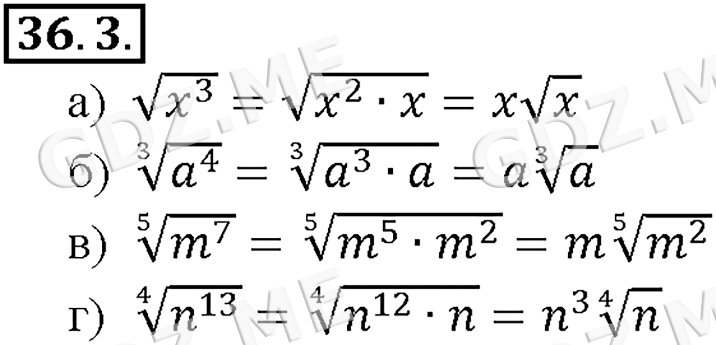 Подробный вариант решения из решебника (ГДЗ): Задание номер 36-3 (Глава 5 Производная. Глава 6 Степени и корни. Степенные функции. §36. Преобразование выражений, содержащих радикалы) по предмету Алгебра, за 10 класс, авторы учебника Мордкович, Александрова.