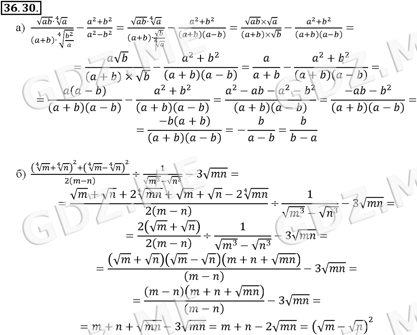Подробный вариант решения из решебника (ГДЗ): Задание номер 36-30 (Глава 5 Производная. Глава 6 Степени и корни. Степенные функции. §36. Преобразование выражений, содержащих радикалы) по предмету Алгебра, за 10 класс, авторы учебника Мордкович, Александрова.